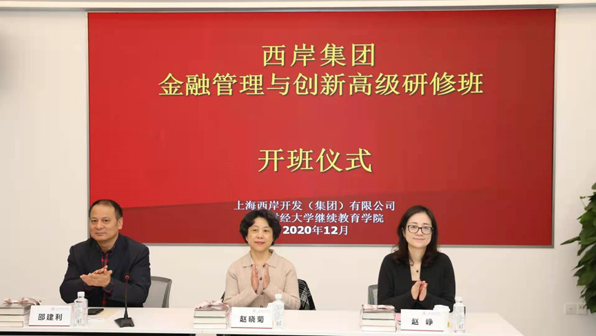 2020年12月4日,美丽黄浦江西岸雨后初晴,银杏飘黄,上海财经大学与西岸开发(集团)合作举办的滨江金融管理与创新研修班,在徐汇区西岸集团滨江智塔五楼水岸报告厅顺利开班,是西岸集团与我院的第一次合作,具有里程碑意义。上海西岸开发(集团)有限公司总经理助理赵峥、上海财经大学继续教育学院副院长邵建利、上海财经大学国际金融中心研究院院长赵晓菊出席了开班仪式。开班仪式后,与会领导与全体学员在智塔观光平台进行了合影留念。
