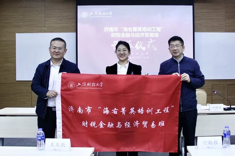 3月19日上午,山东省济南市“海右菁英培训工程”财税金融与经济贸易班开班仪式在我校中山北一路校区举行。山东省济南市委组织部副部长、市公务员局局长王玉跃,济南市委组织部人才一处处长王福岭,济南市委组织部干部教育处副处长、二级调研员卢宪波,上海财经大学党委副书记、纪委书记何鹏程,上海财经大学终身教育学院院长姜晖等出席开班仪式。开班仪式由终身教育学院院长姜晖主持。