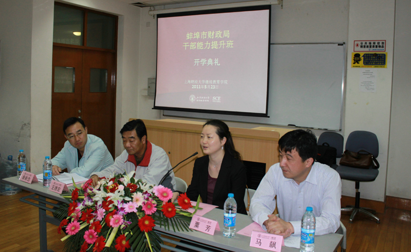 蚌埠市财政局国资委马飙副主任、蚌埠市人大财经工委王德宏主任、蚌埠市财政局局长助理秦新忠、上海财经大学继续教育学院粟芳书记