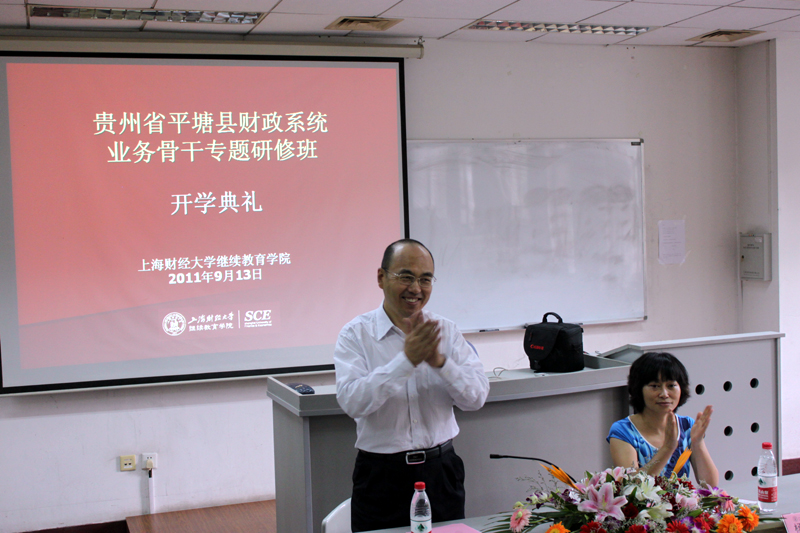 刘鹏院长首先代表学院对全体学员的到来表示热烈的欢迎。他简要介绍了上海财经大学及继续教育学院的发展沿革,介绍了我院在政府培训方面取得的积极成果。他表示学院会尽力为学员提供细致周到的后勤服务,在师资方面配备实战经验
