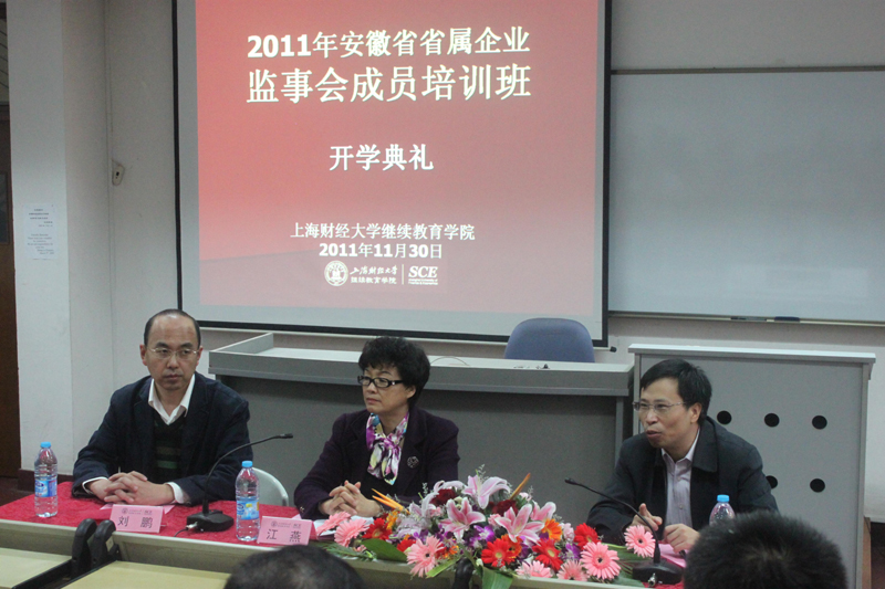江燕女士对于上海财经大学为此次省属企业监事会成员首次到省外高校培训,提供了一流的学习环境和师资力量及上海财经大学的领导及工作人员的努力表示衷心的感谢。并在发言中对此次培训提升省属企业监事会成员的业务素质,加强各企业监事会成员之间的学习交流,提出了几点要求:1.提高认识,增强学习的主动性;2.努力学习,提高国资监管能力;3.严格要求,遵守培训班的各项纪律;4.周密安排,做好后勤保障工作。最后,江燕总会计师祝愿学员们学习顺利,身体健康!培训班取得圆满成功!