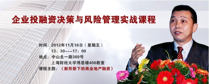 11月16日下午14:00,盛世神州房地产股权基金管理公司首席投资官,资深房地产投融资和战略专家张健坐客上海财经大学金融市场运作开放课堂现场,做了以《新形势下的商业地产融资》为主题的论坛讲座。 张健老师从“我国商业地产的投资和融资特点”、“商业地产投资和盈利模式分析”、“目前各种商业地产融资产品分析”、“商业地产和房地产投资基金融合”等四个方面帮助学员了解了商业地产融资的具体条件,渠道以及具体的策略。 张健老师在课程现场为学员授课张健老师为学员讲解商业地产融资的具体条件课程现场学员认真学习