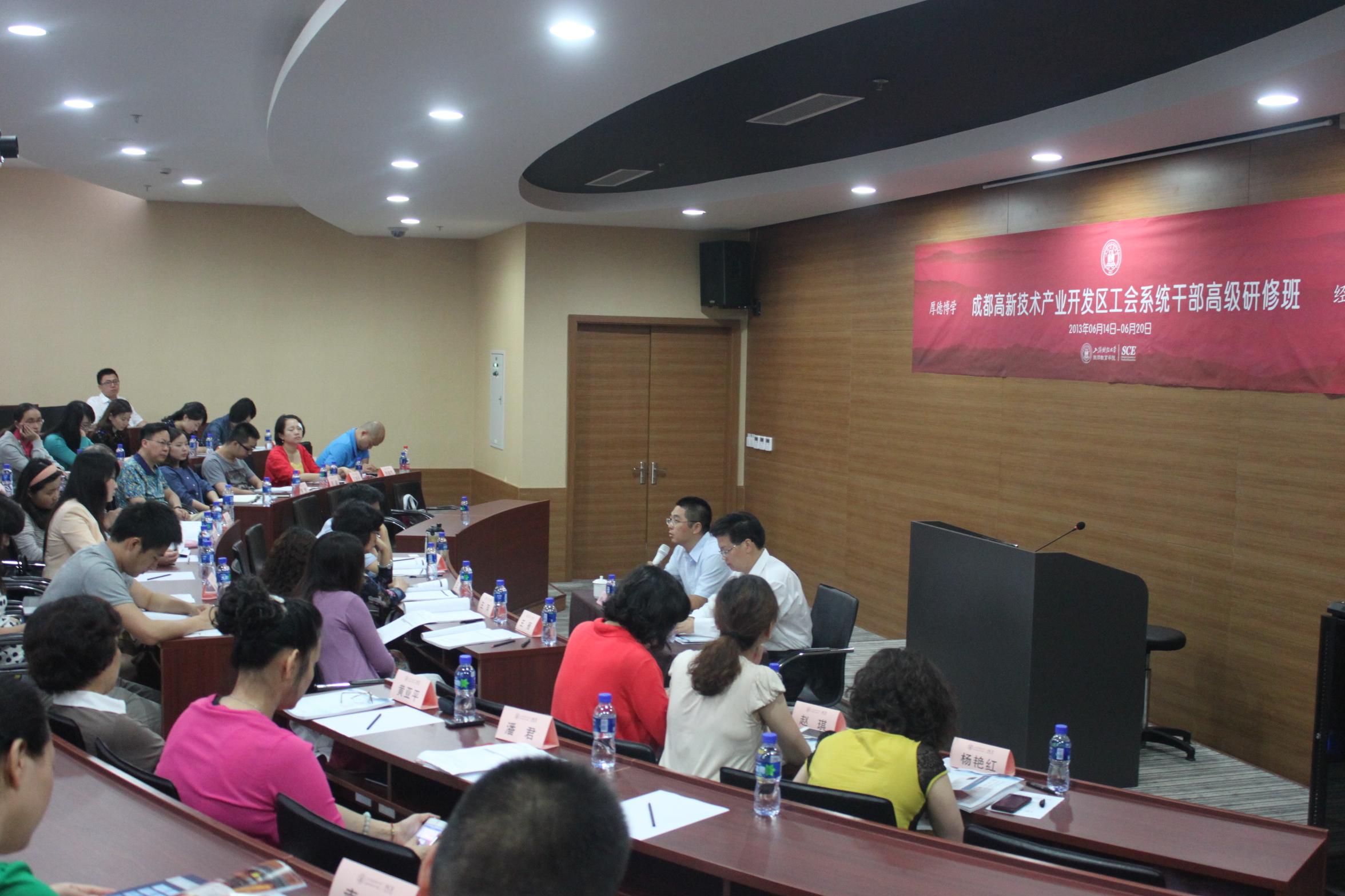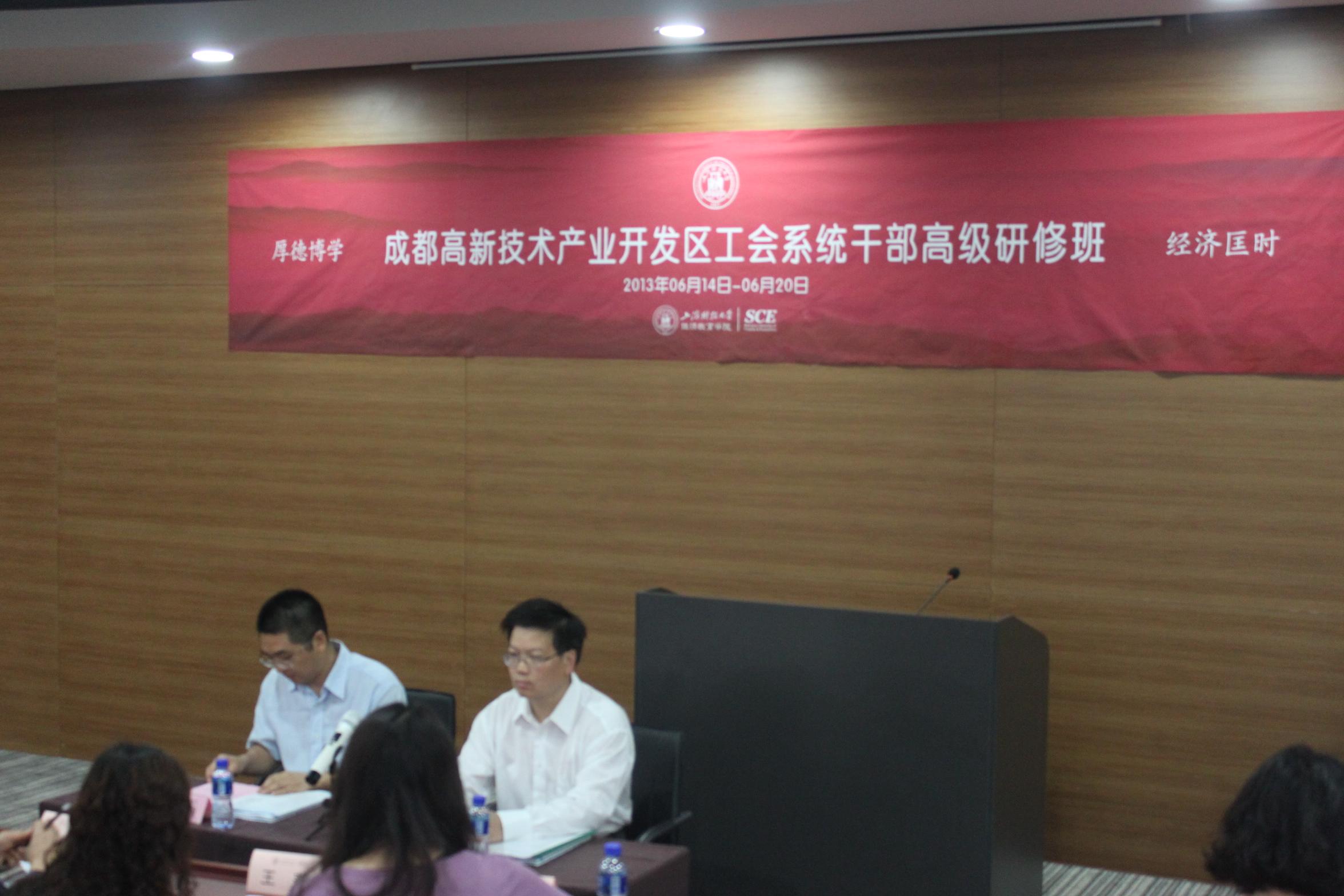 2013年6月14日上午,成都高新技术产业开发区工会系统干部高级研修班开班典礼在我校中山北一路校区博思楼404教室隆重举行。出席本次开学典礼的领导嘉宾有:成都高新技术产业开发区工会办事处干部陈纲先生 、上海财经大学继续教育学院院长助理黄振耀副教授。