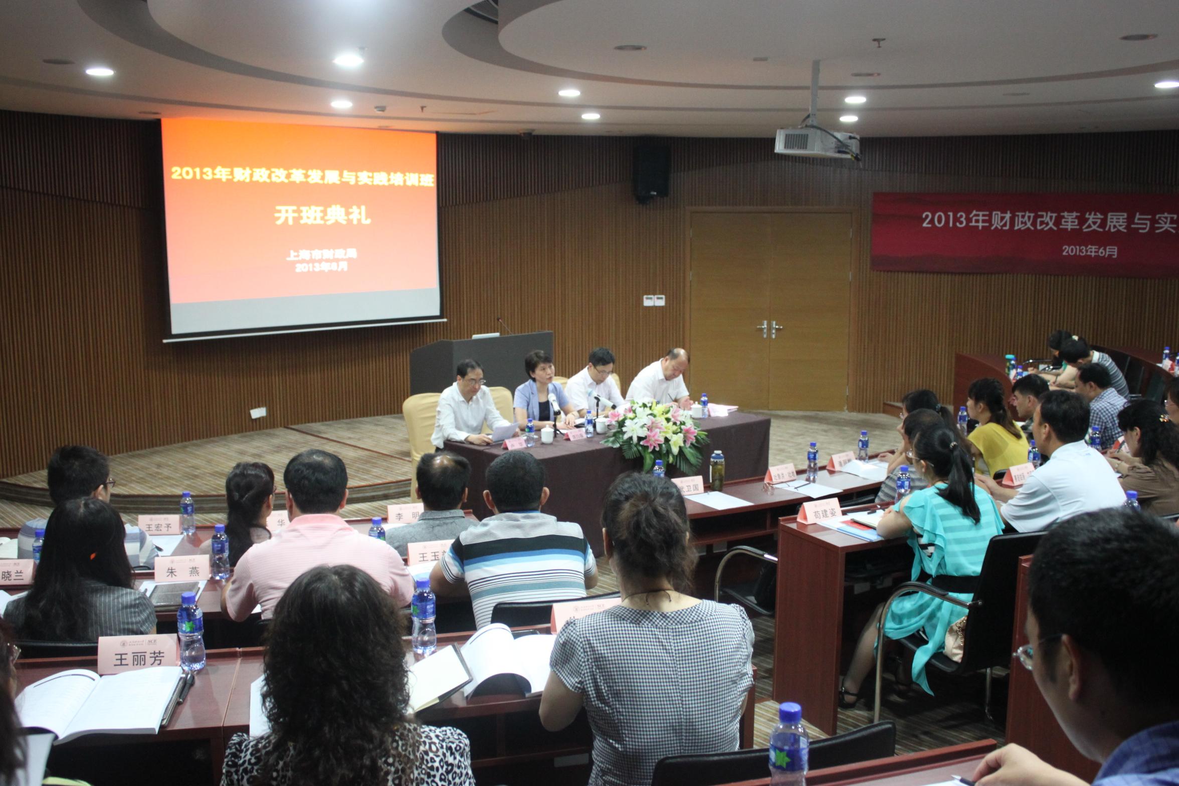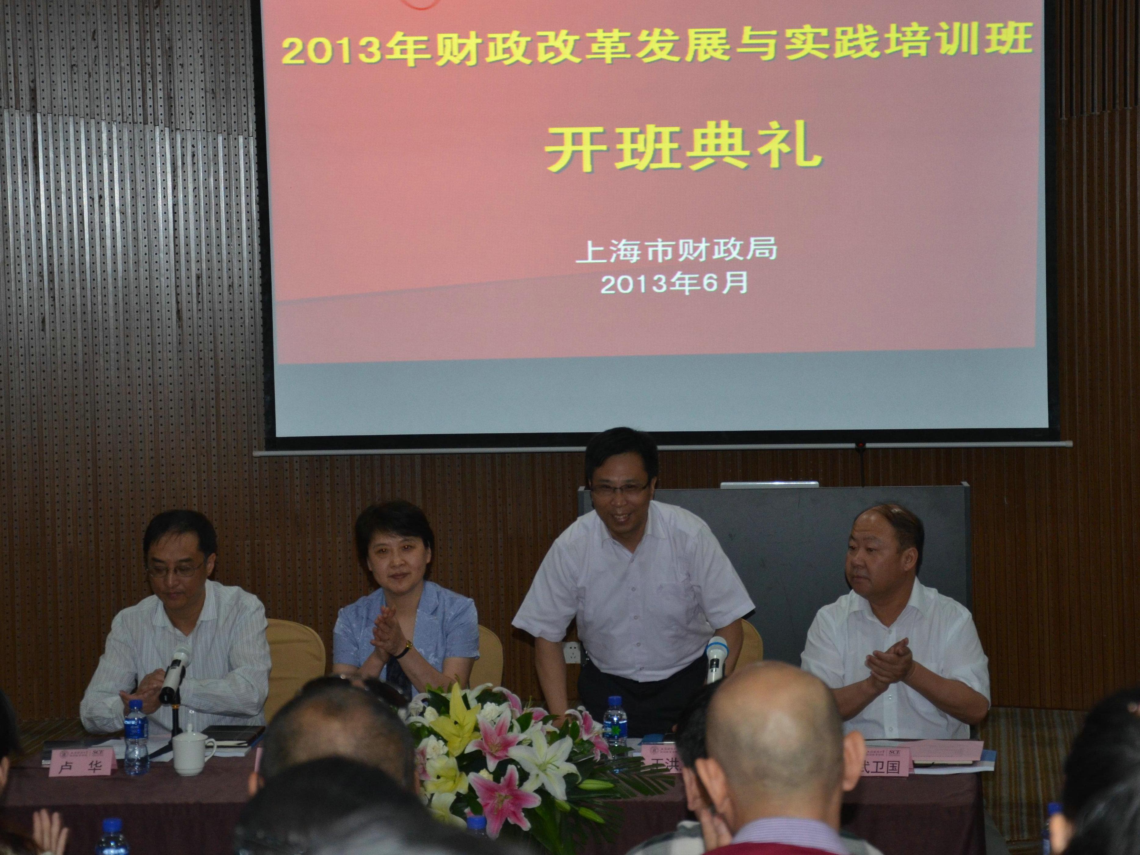 王洪卫副校长首先代表上海财经大学对全体学员的到来表示热烈的欢迎。他回顾了我校发展的历史沿革,对我校目前的学科发展水平和人才培养情况进行了简单的介绍。王校长在讲话中特别提到,新的一届中央政府组建以来,简政放权、减少政府指令性的管理已经成为显著特征,面对纷繁复杂的社会、经济问题,政府希望更多地利用财政、税务等政策杠杆来引导社会的发展,这对我国的财政部门和财政干部都提出了更高的要求。上海财经大学与财政系统有着深厚的历史渊源,2012年,教育部、财政部和上海市人民政府更是签署了三方共建协议,上海财经大学希望能够充分发挥大学的教育资源优势,为上海市和全国财政系统的发展贡献力量。此次培训班能够放在上海财经大学举办,是一项艰巨而光荣的任务,上海财经大学会竭尽全力办好此次培训班,确保学员们学有所获,提升自我。