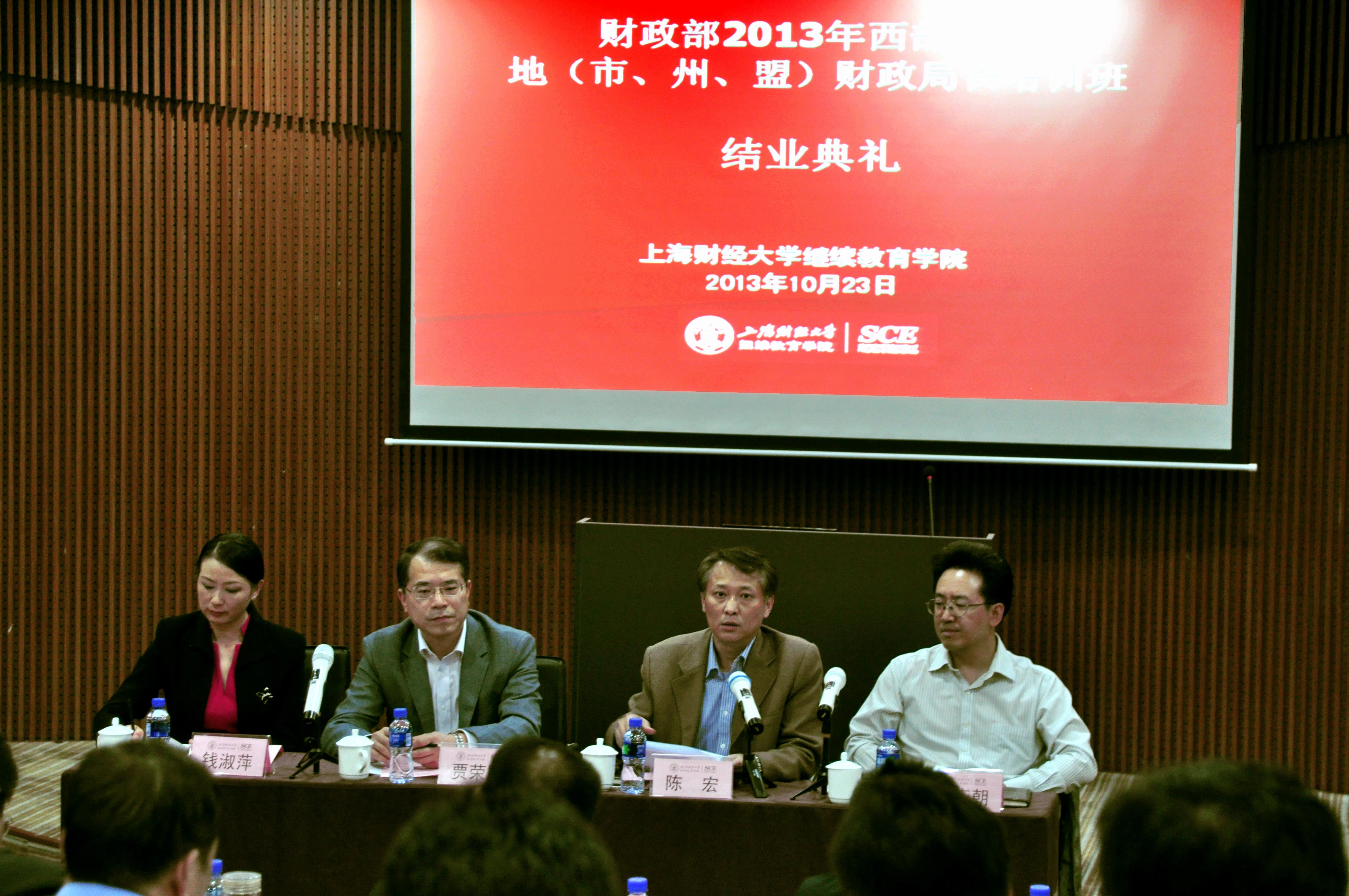结业典礼上,首先由学员代表上台做交流发言。大家由衷感谢财政部提供这样的培训机会,通过名师名家授课、上海市财政局座谈、上海国家重点项目基地的考察,大家获益良多。同时校园里的培训,让大家又有机会重新感受年轻的气息,更进一步增进了各位学员之间的友谊,为西部十三省之间财政的相互交流提供了很好的平台。