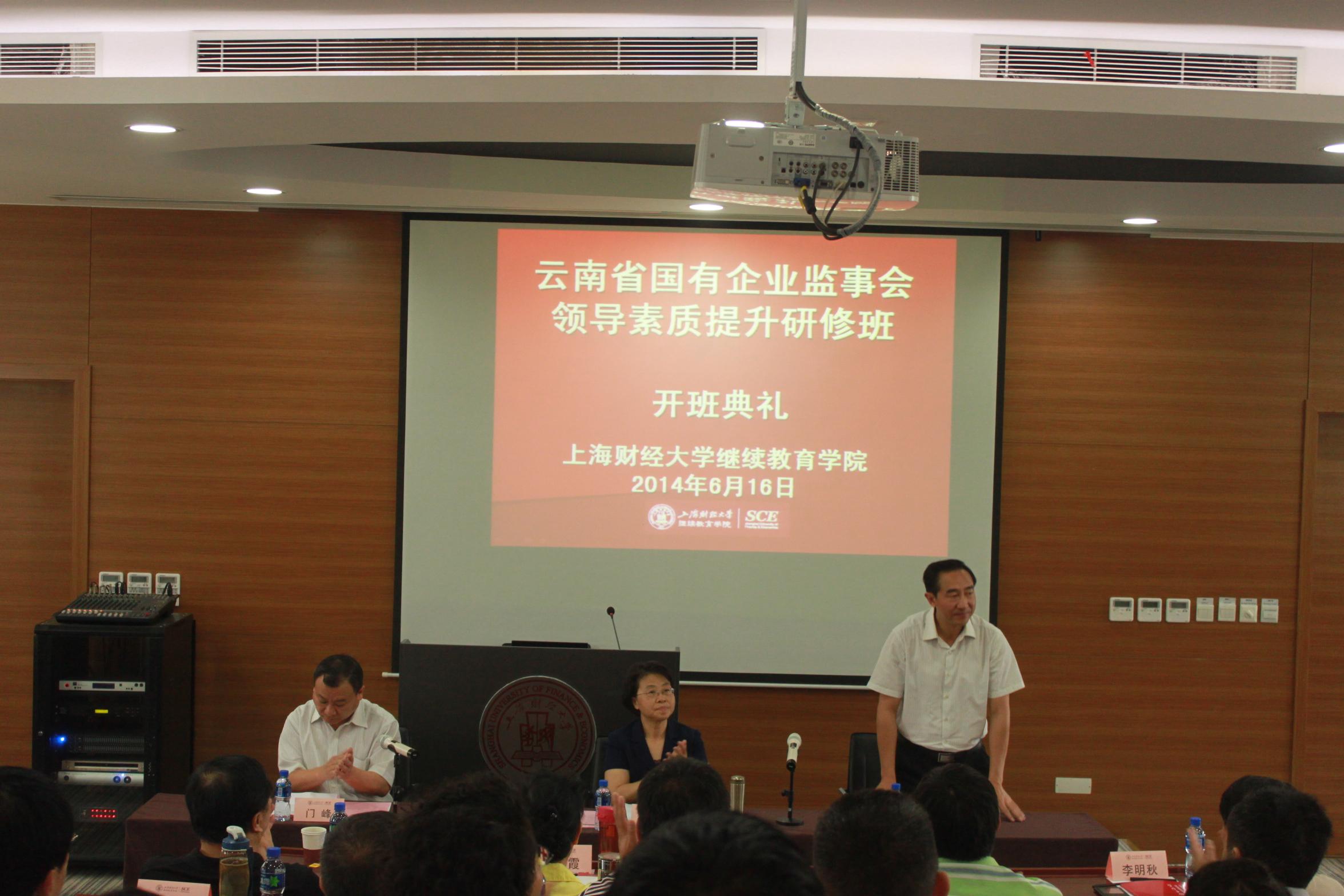 黄颖副校长首先代表上海财经大学对全体学员的到来表示热烈的欢迎,同时感谢云南省国资委的信任,将此项重要的培训任务放在了上海财经大学。她谈到前期与云南省国资委为此次培训班的安排进行了长时间的沟通,一起精心设计课程方案并组织实施,邀请到多位知名教授学者授课,安排组织学员前往上海自贸区以及上海世博集团参观座谈,全面提升学员的综合素质和管理水平。接着,黄颖副校长简要介绍了我校的发展历程以及继续教育学院在高层次非学历培训方面所取得的成绩。最后,她祝愿学员们在上海财经大学度过充实、丰富多彩的学习生活。