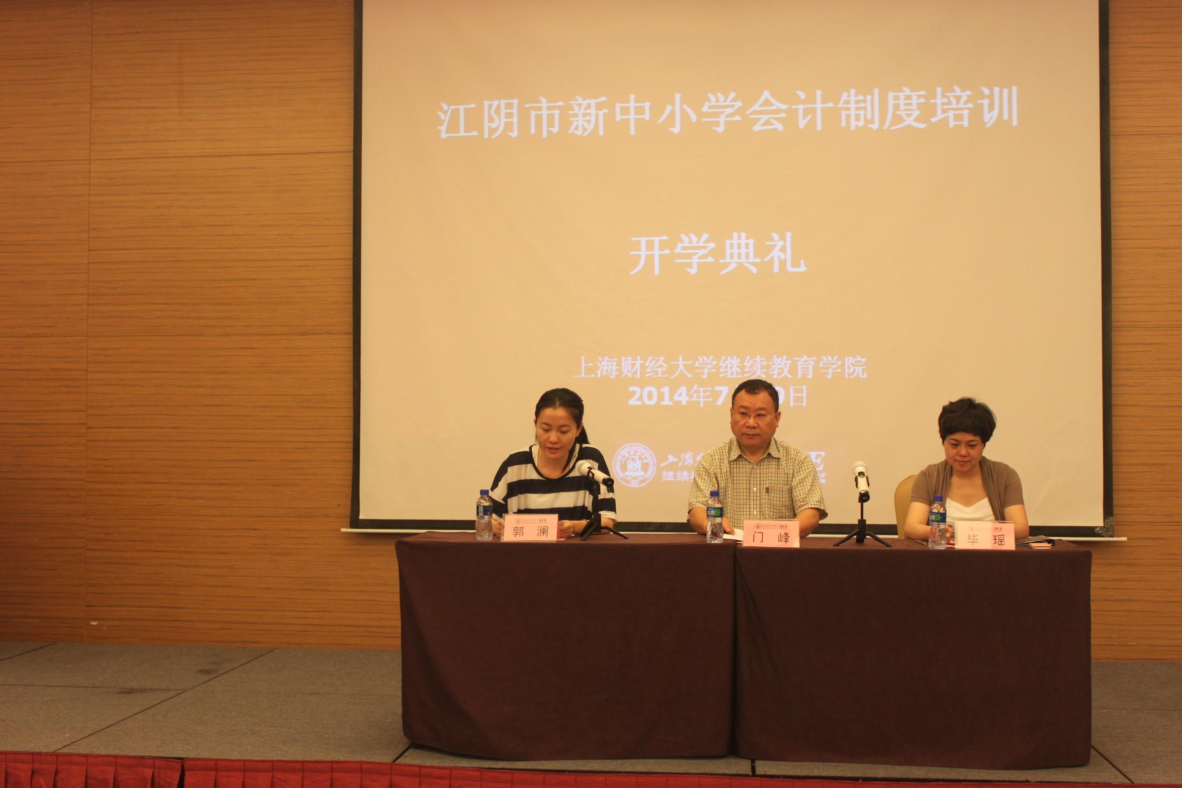 门峰院长首先代表上海财经大学继续教育学院对全体学员的到来表示热烈的欢迎。接着,他简要介绍了我校的发展历程以及继续教育学院在高层次非学历教育(培训)方面所取得的成绩。同时,他感谢江阴市教育局对我院的信任,把重要的培训任务交由上海财经大学继续教育学院,并保证学院将会配备强大的教学管理团队,为大家提供最好的服务。最后,他希望全体学员在上海财经大学继续教育学院学有所获、生活愉快。