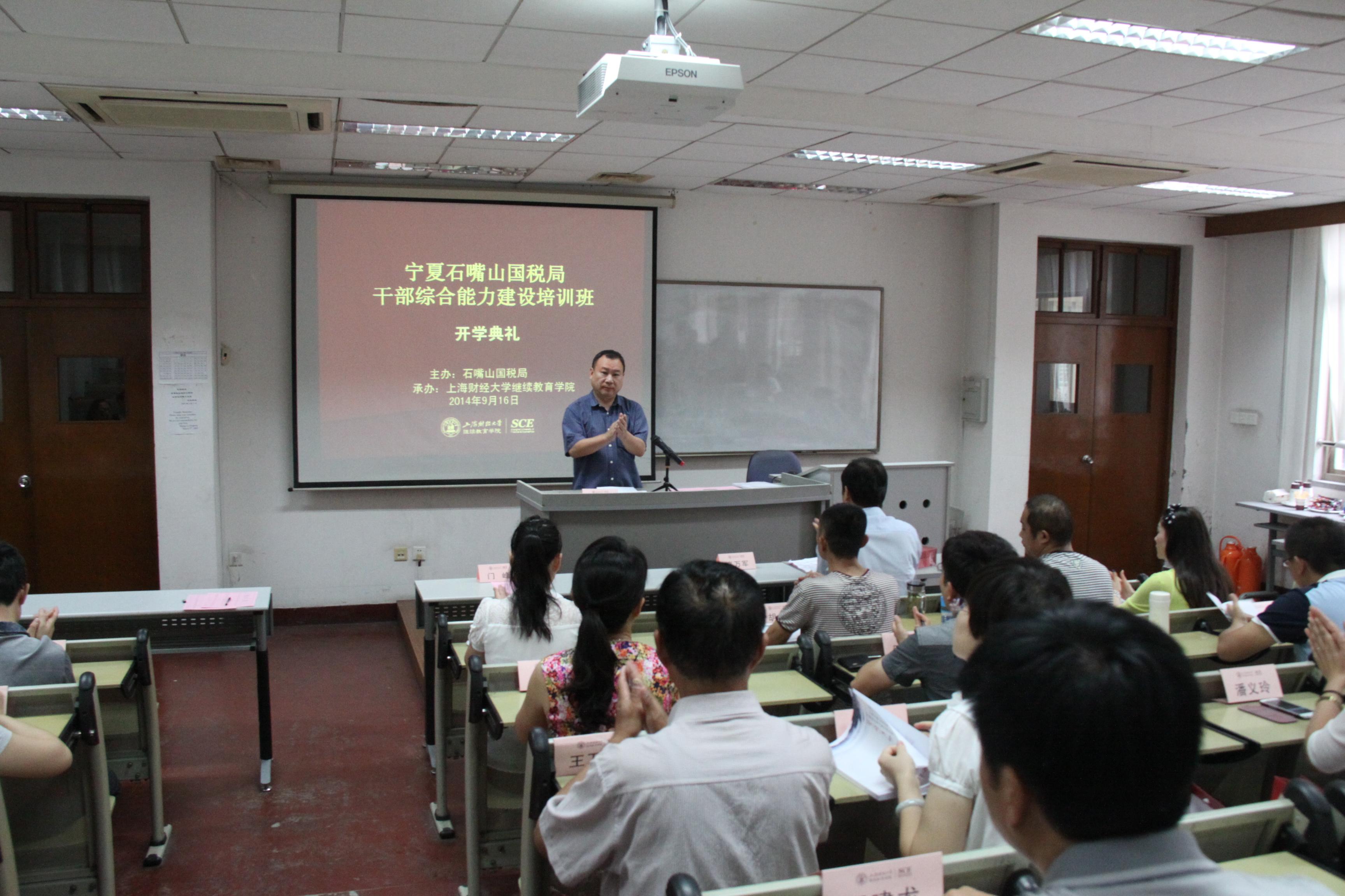 门峰院长首先代表上海财经大学继续教育学院对到会的宁夏石嘴山国税局的学员表示热烈的欢迎。随后,他简要介绍了我院政府培训大概的情况,并衷心希望宁夏石嘴山国税局的学员在上海财经大学学有所获,祝愿大家在培训期间能够留下一段美好的回忆。