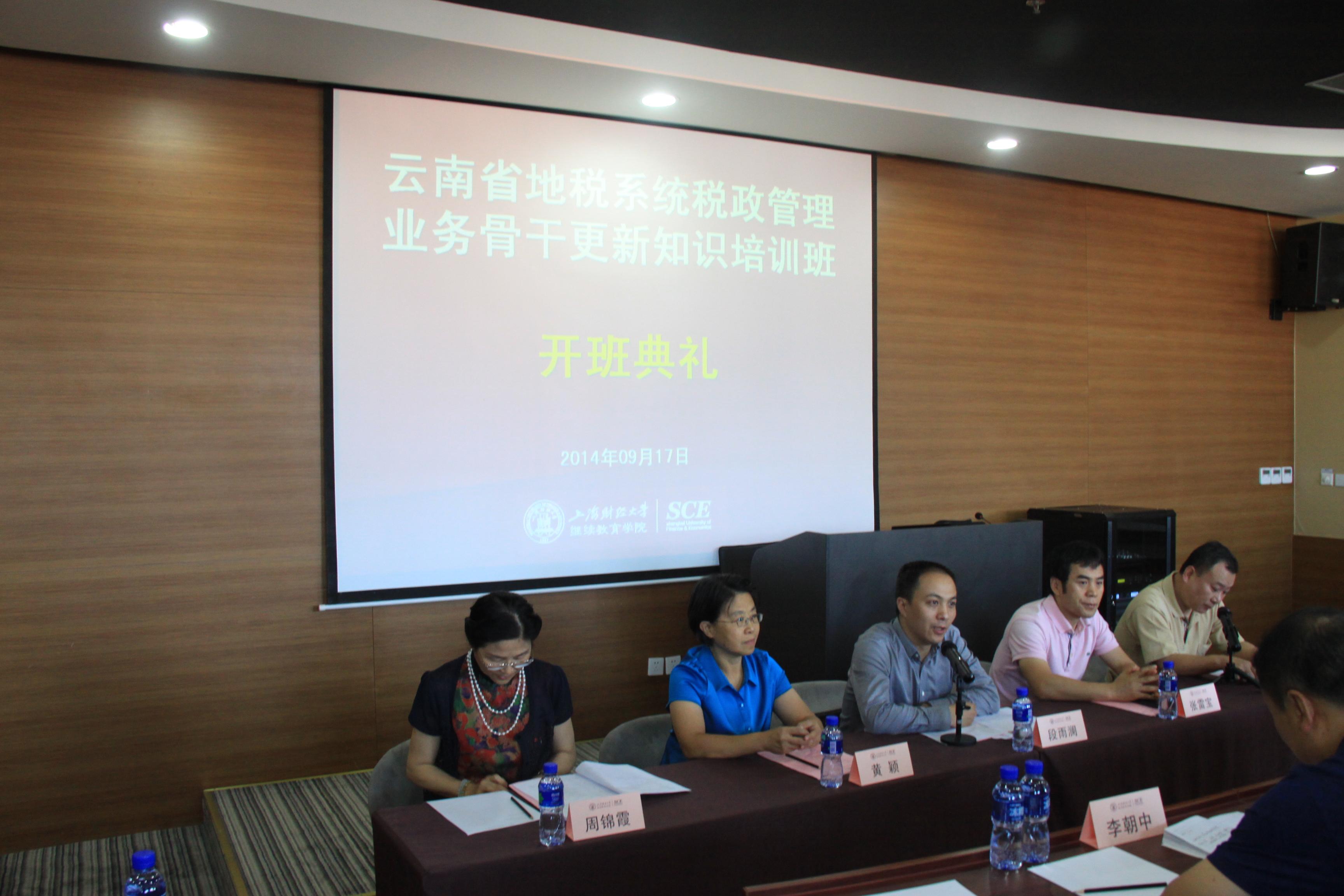 黄颖副校长首先代表上海财经大学对全体学员的到来表示热烈的欢迎,并简要介绍了我校的发展历程以及继续教育学院在非学历教育(培训)方面所取得的成绩。黄校长指出,此次培训班的举办具有重要的现实意义,旨在通过专家名师的理论讲解与丰富实用的社会实践,帮助学员解放思想、转变观念、交流经验、提高认识。最后,黄校长感谢云南省地税系统对我院的信任,并保证学院将会配备强大的教学管理团队,为大家提供最好的服务,希望全体学员在上海财经大学继续教育学院学有所获、生活愉快、工作顺利。