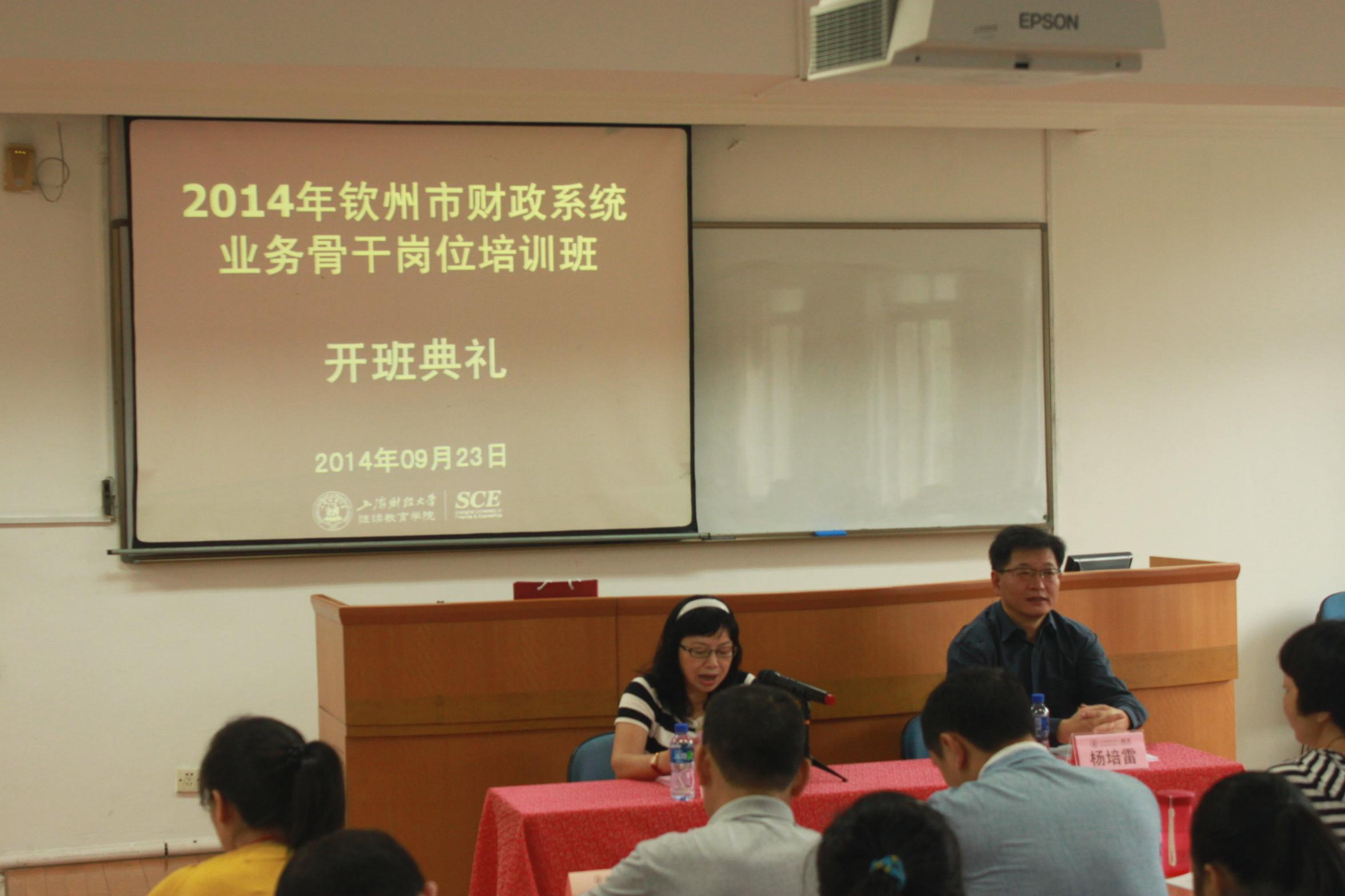 杨书记首先代表上海财经大学继续教育学院对全体学员的到来表示热烈的欢迎,并向参加本次培训班的学员介绍了上海财经大学的悠久历史以及近年来继续教育学院在非学历教育(培训)方面所取得的成绩,并感谢钦州市财政局对上海财经大学继续教育学院的信任,保证学院会为大家提供最好的培训配套服务,希望全体学员在上海财经大学培训期间学有所获、生活愉快。