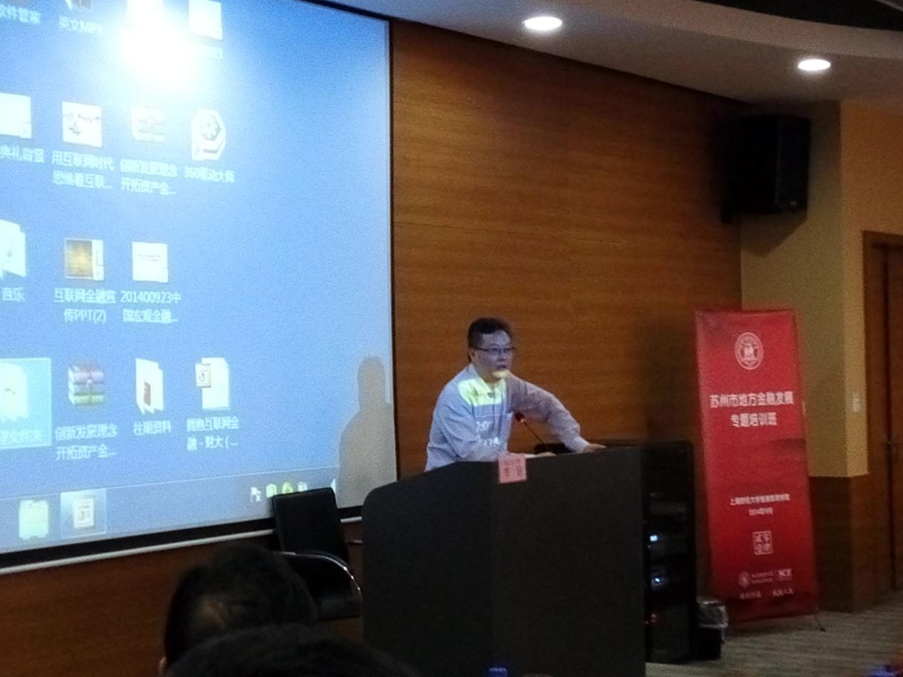 由苏州市金融办副主任赵琨主持,主要研讨了五个方面内容:问题一:互联网金融对传统金融的冲击在哪里?问题二:互联网金融的优劣势在哪?问题三:互联网金融的平台如何搭建?问题四:互联网金融的大数据如何发挥作用?问题五:互联网金融如何进行营销。双方探讨激烈,反响热烈,参加的学员们也积极提问和发表见解,原定一个半小时的议程,一直持续讨论了近三小时。苏州学员们的学习接受新事物的劲特足。