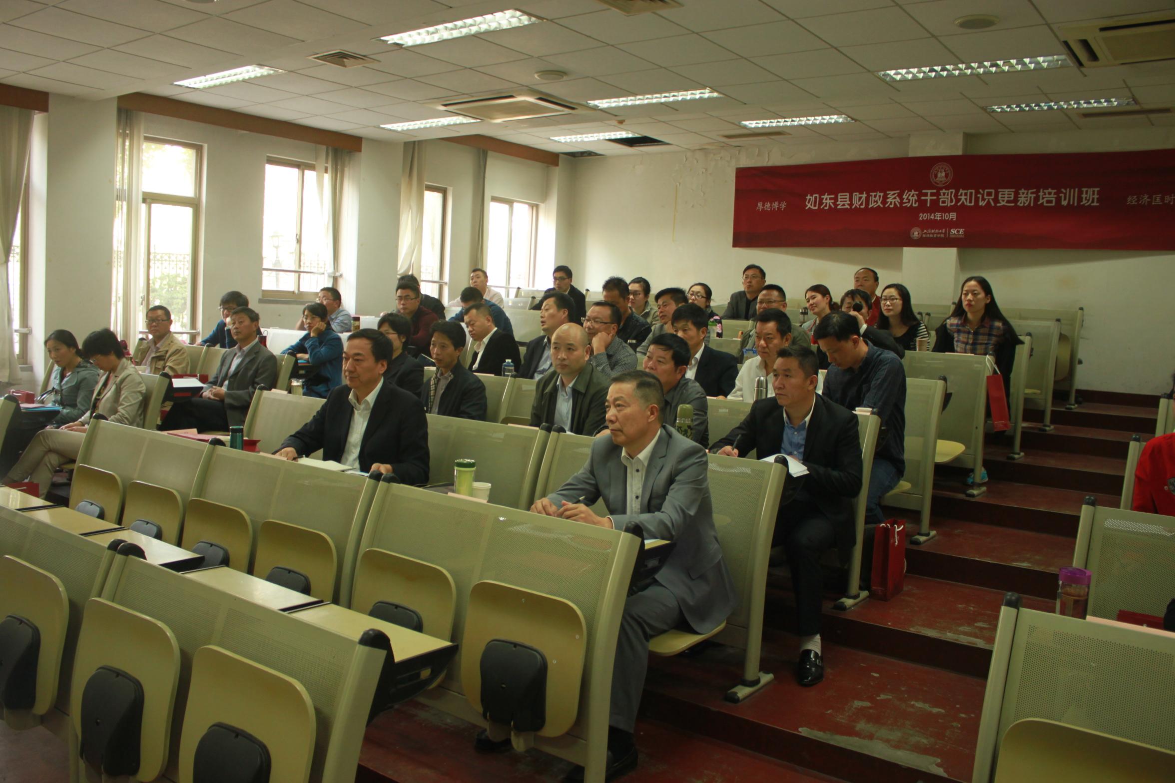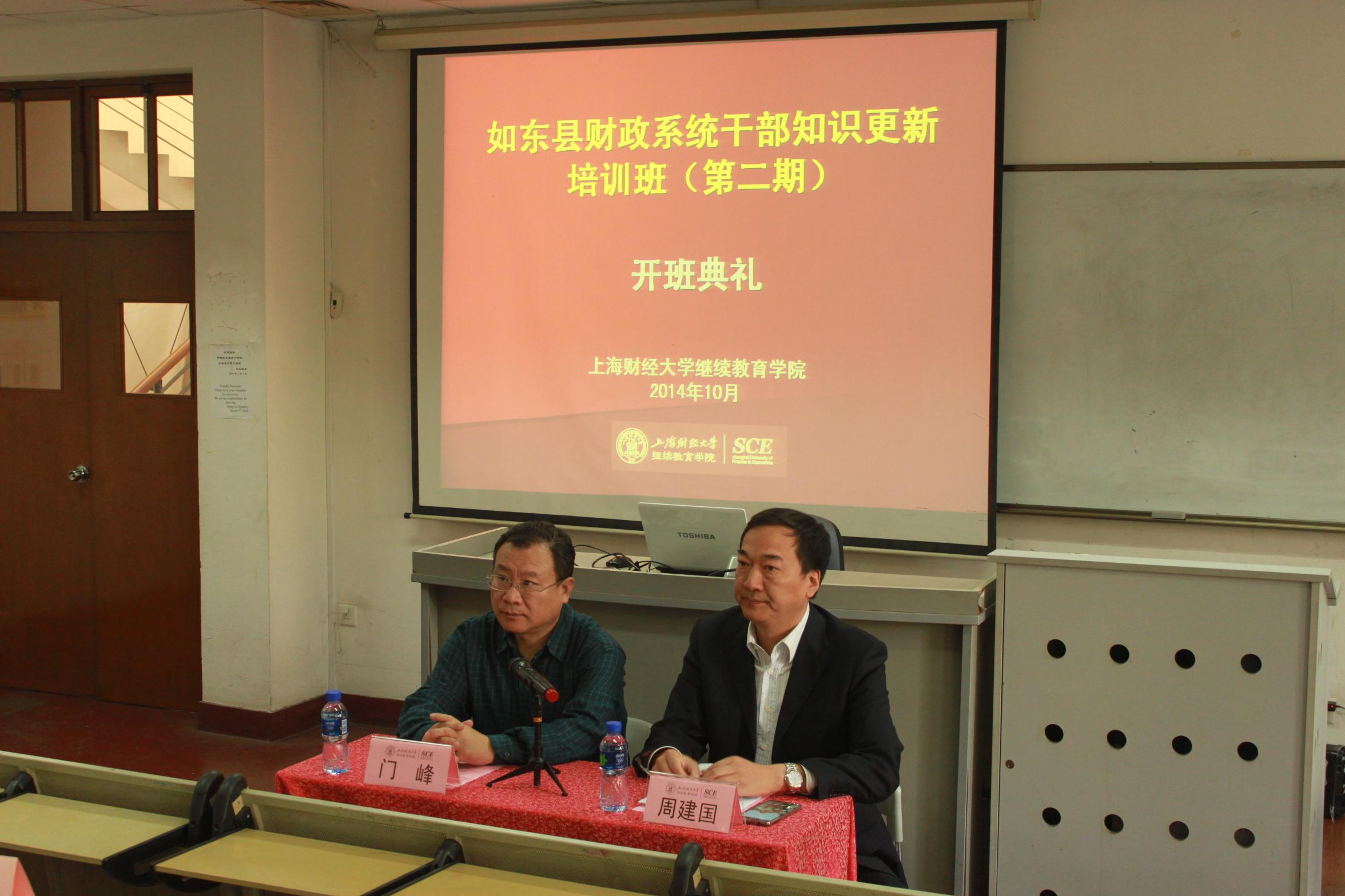 门峰院长首先代表上海财经大学继续教育学院对全体学员的到来表示热烈的欢迎,并向参加本次培训班的学员介绍了上海财经大学的悠久历史以及近年来继续教育学院在非学历教育(培训)方面所取得的成绩,并感谢如东县财政局对上海财经大学继续教育学院的信任,保证学院为大家提供最好的培训配套服务,希望全体学员在上海财经大学培训期间学有所获、生活愉快。