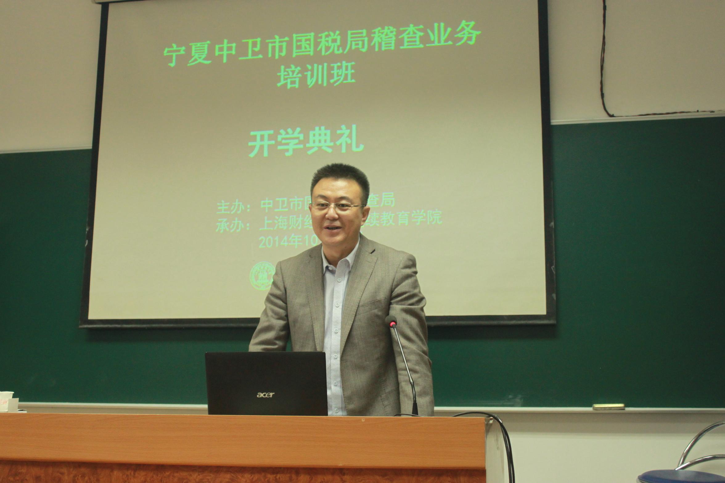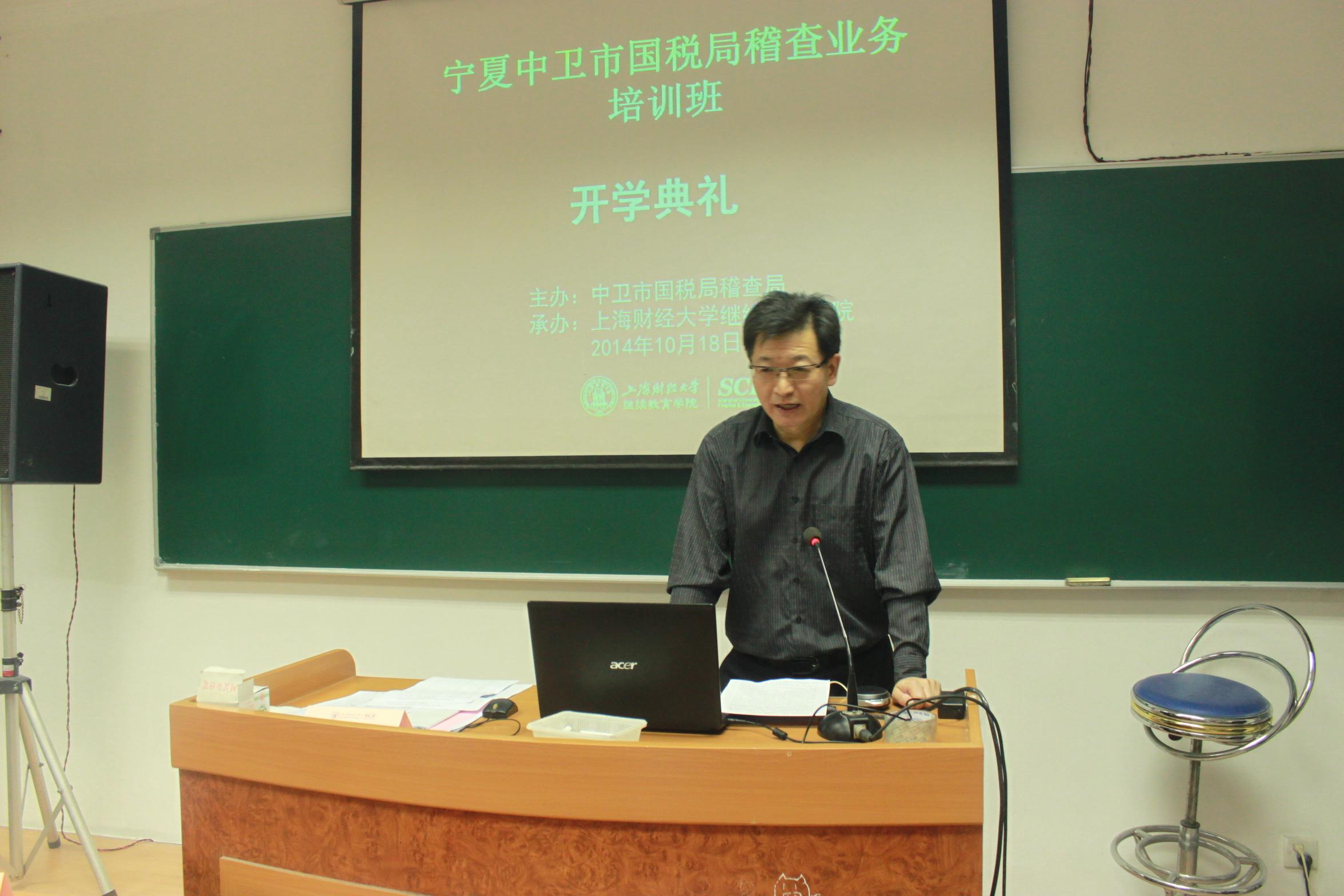 杨培雷书记首先代表上海财经大学继续教育学院对到会的中卫市国税局稽查局的学员表示热烈的欢迎。随后,他简要介绍了我院政府培训的发展情况。最后,杨培雷书记衷心希望中卫市国税局稽查局的学员在上海财经大学学有所获、生活愉快,并祝愿大家在培训期间能够留下一段美好的回忆。