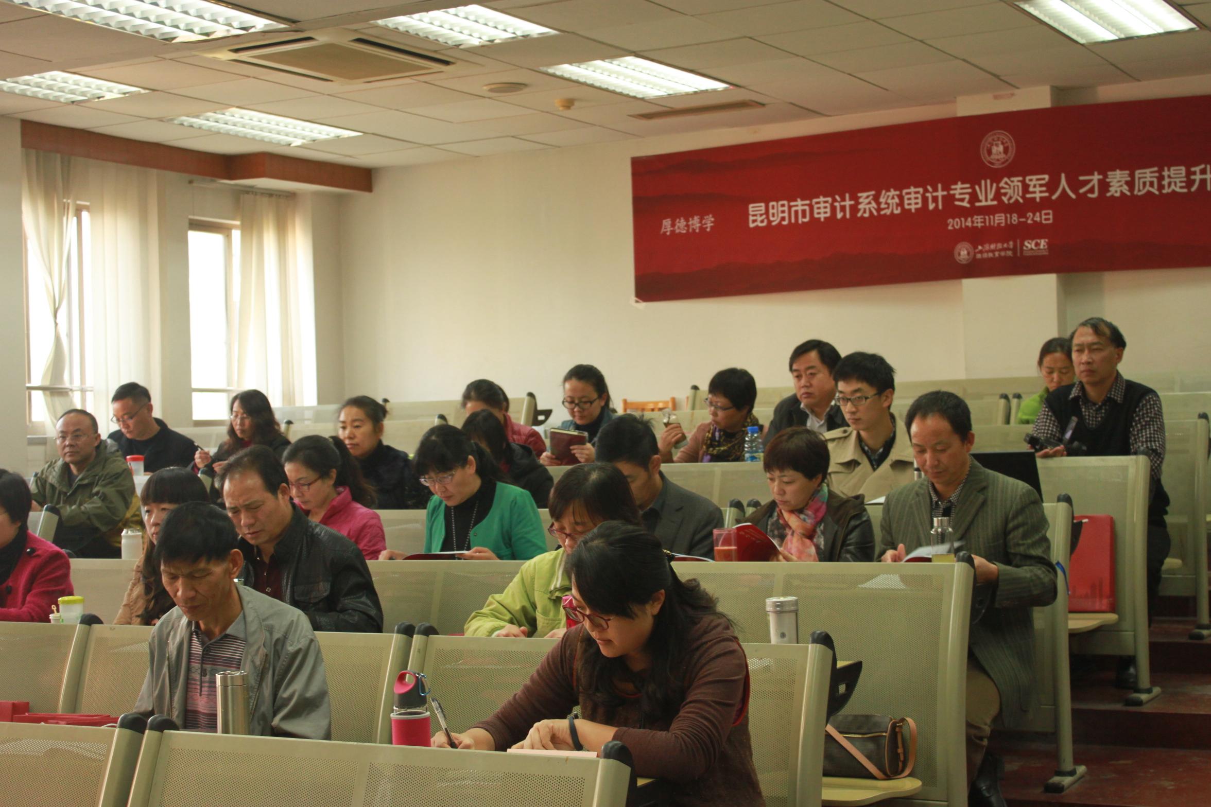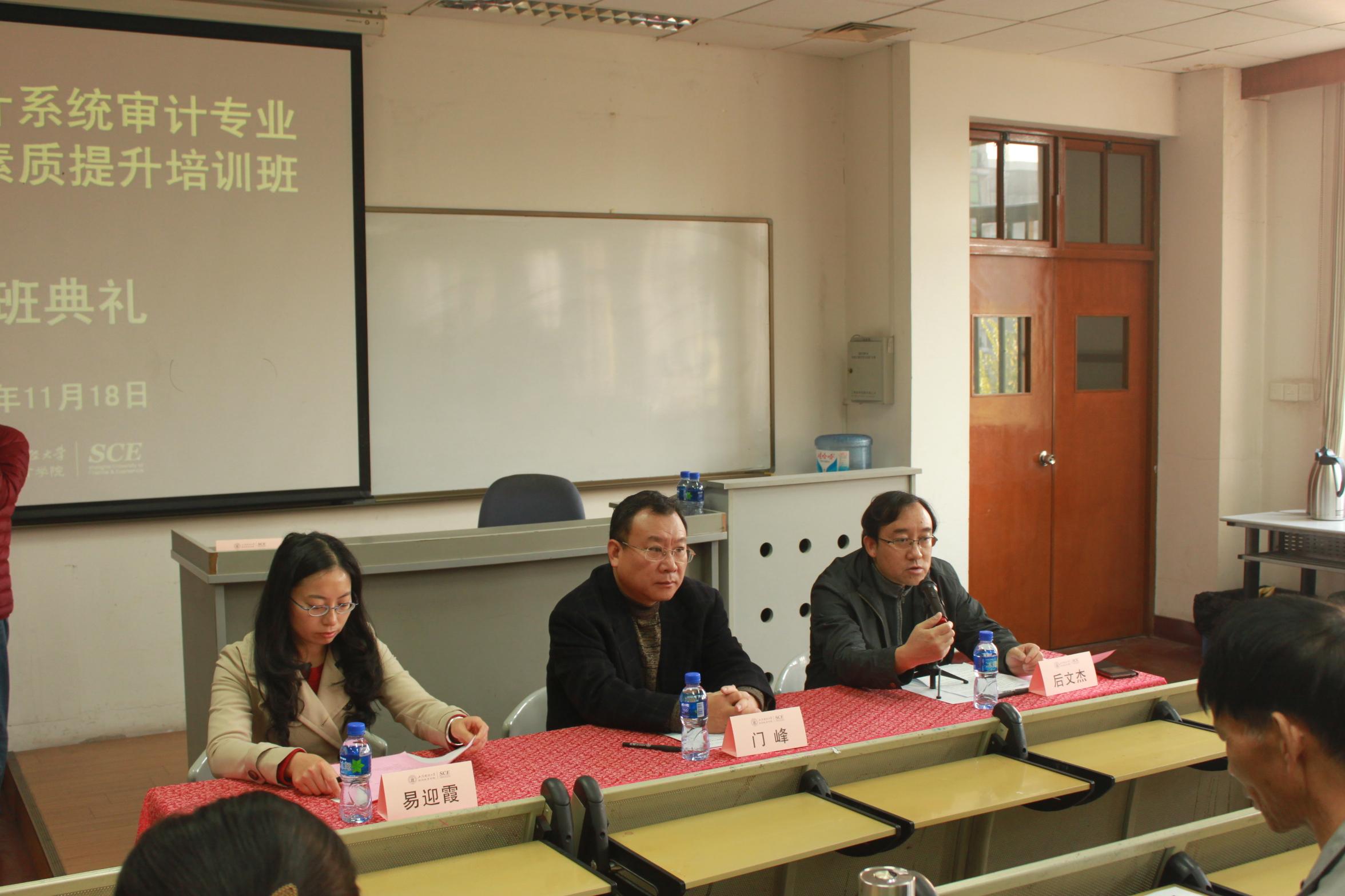 门峰院长首先代表上海财经大学继续教育学院对全体学员的到来表示热烈的欢迎,同时感谢昆明市审计局对我院的信任,把本次重要培训任务交由继续教育学院承办。他简要介绍上海财经大学的历史沿革和继续教育学院在非学历教育(培训)方面所取得的成绩及其发展方向,希望通过这次培训能够帮助学员们提高相关审计工作所需的专业水平和综合能力。最后,他祝愿学员们学有所获、学以致用。