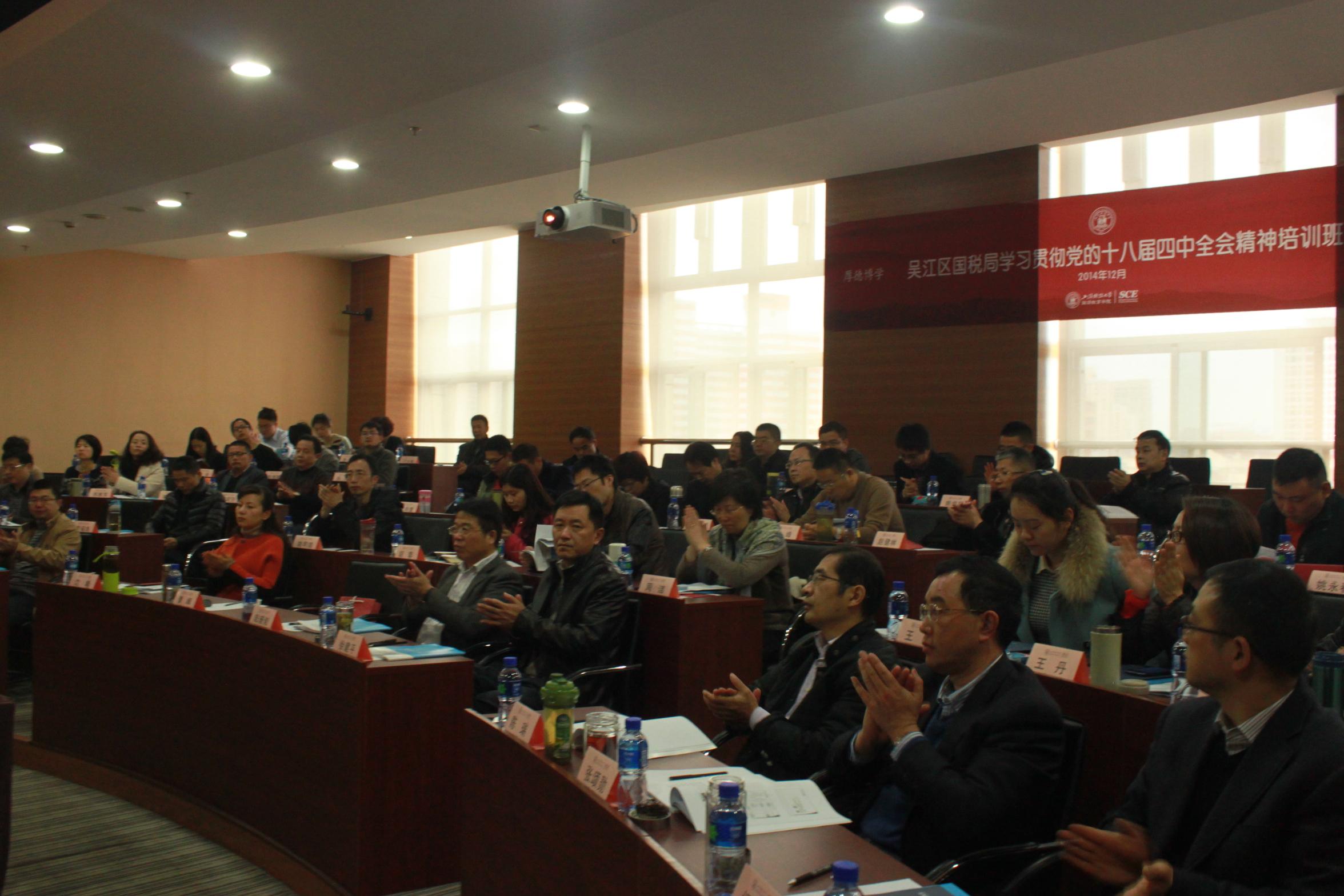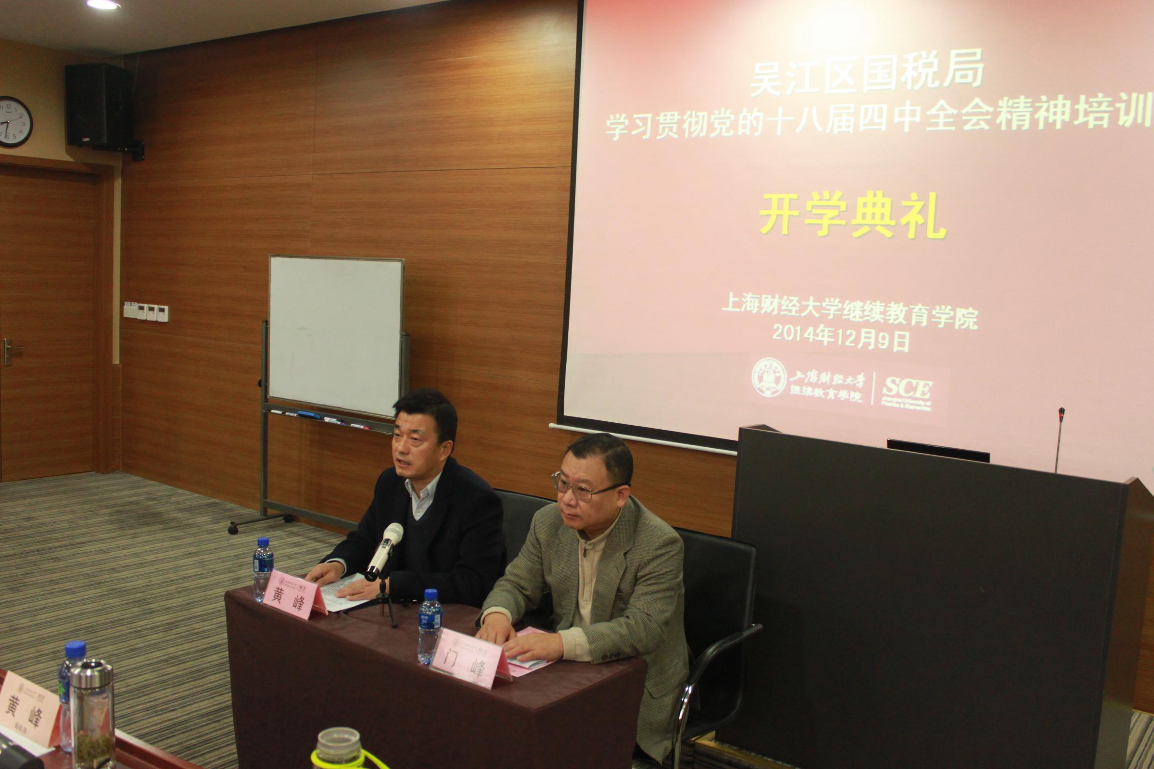 门峰院长代表上海财经大学继续教育学院对全体学员的到来表示热烈的欢迎,并向参加本次培训班的学员介绍了上海财经大学的悠久历史以及近年来继续教育学院在非学历教育(培训)方面所取得的成绩,并感谢吴江区国税局对上海财经大学继续教育学院的信任,保证学院为大家提供最好的培训配套服务,希望全体学员在上海财经大学培训期间学有所获、生活愉快。