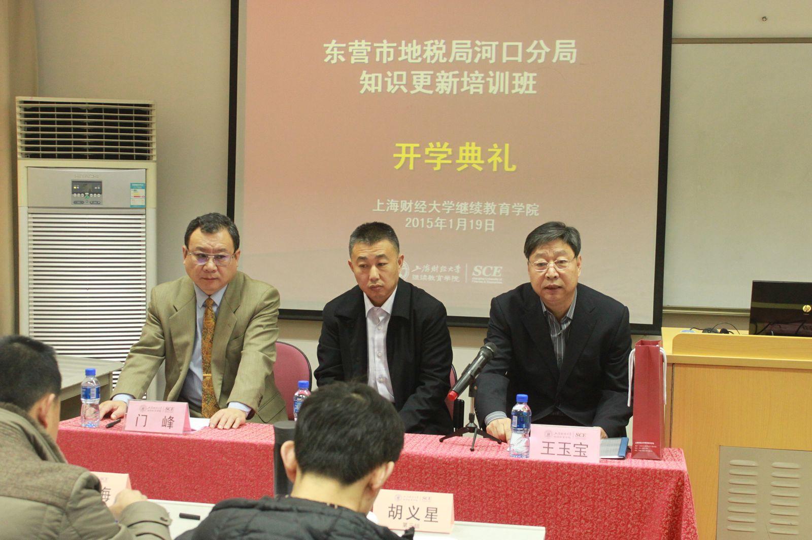 门峰院长代表上海财经大学继续教育学院对全体学员的到来表示热烈的欢迎,并向参加本次培训班的学员介绍了上海财经大学的悠久历史以及近年来继续教育学院在非学历教育(培训)方面所取得的成绩,并感谢东营市地税局河口分局和中国石油大学教育发展中心对上海财经大学继续教育学院的信任,保证学院为大家提供最好的培训配套服务,希望全体学员在上海财经大学培训期间学有所获、生活愉快。