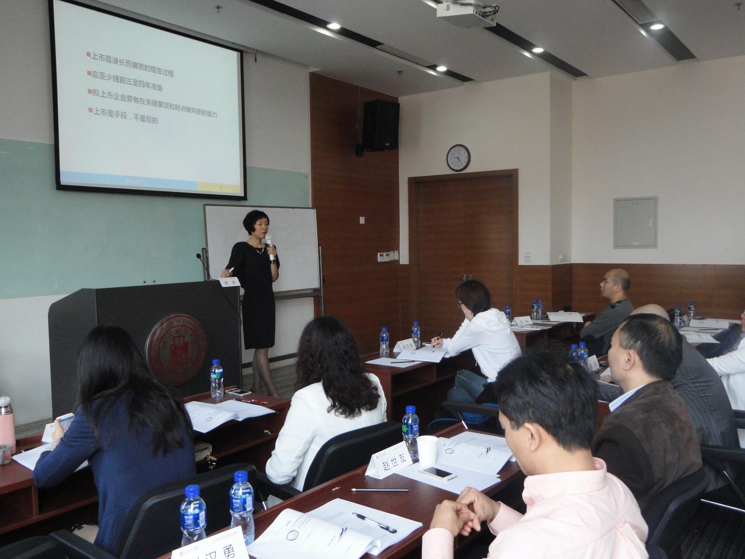 上海财经大学企业投融资决策与金融实战课程班4月份课程如期举行,此次课程邀请到著名实战金融专家、北京融诚维创投资咨询公司总经理杨轶老师主讲。杨老师作为企业方财务顾问,深度参与过多家企业的股权融资、重整改制和上市的过程。