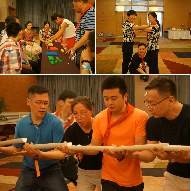 合影之后是拓展活动的环节《点亮智慧之光》。学员们分成红黄蓝三组,由队长带领完成各项活动:森林的故事、急速60秒、地狱之塔、汉诺塔……通过一天的拓展训练增进了大家的沟通交流,在活动中学习管理和协作。一天的拓展项目大家笑语不断,一年的缘分从这里开始了。