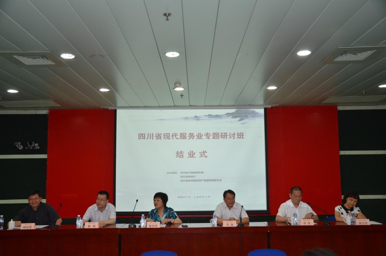 继续教育学院杨培雷书记首先代表上海财经大学感谢四川省组织部、国资委、商务厅领导对我院的肯定与信任,由衷感谢学校对继续教育学院工作的重视与支持,并对四川省现代服务业专题研讨班的圆满结束表示衷心祝贺。