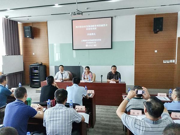 2016年9月初,四川省企业发展战略管理与投融资企业家培训班开班典礼在我校中山北一路校区博思楼402教室隆重举行。出席本次开学典礼的嘉宾有:四川省组织部高端人才服务中心主任杨瑛、上海财经大学继续教育学院门峰院长以及四川省经信委教育培训处相关负责人支持开班式。