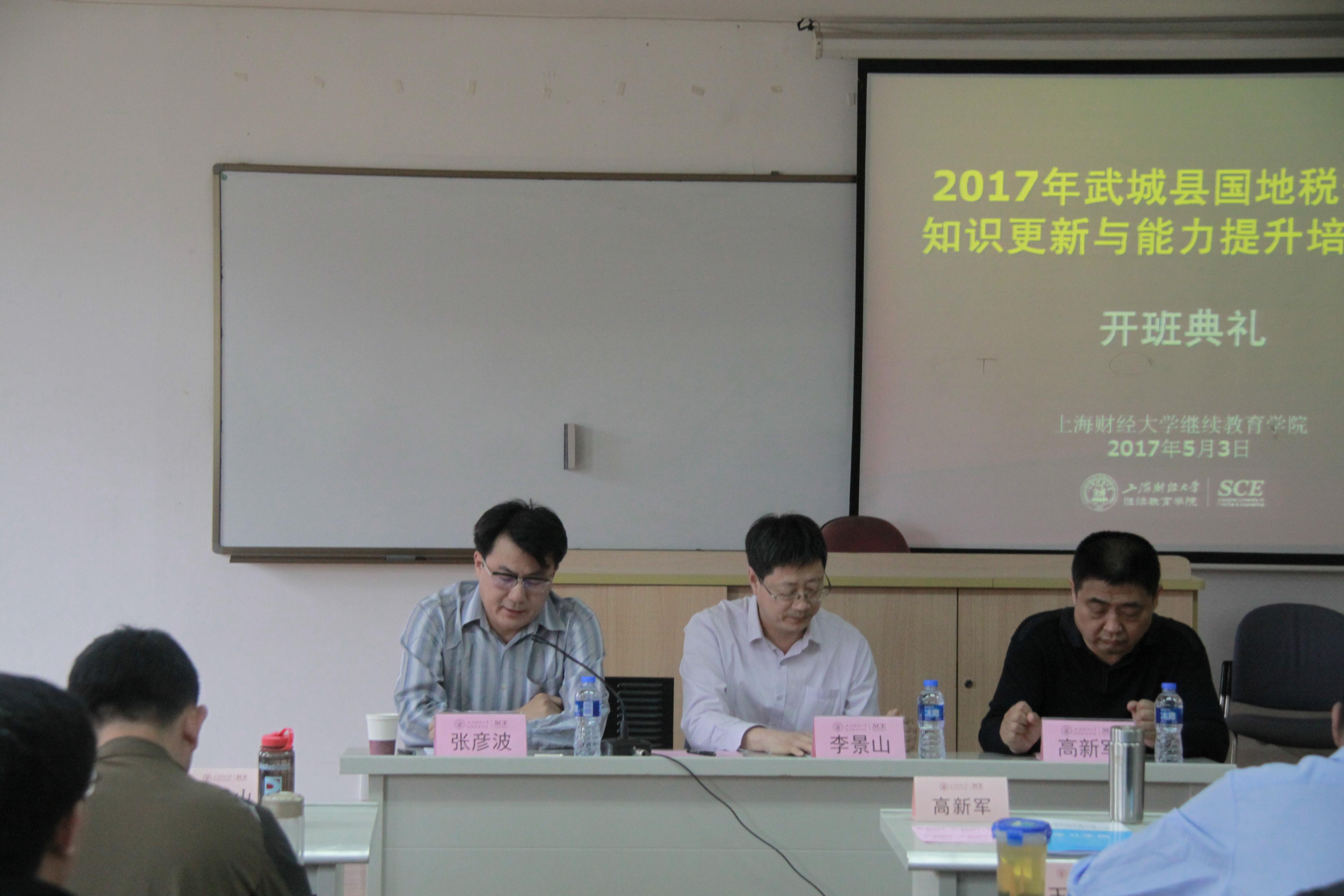 张彦波书记首先代表上海财经大学继续教育学院对全体学员的到来表示热烈的欢迎,接着,他简要介绍了我校的发展历程以及继续教育学院在高层次非学历教育(培训)方面所取得的成绩。同时,他感谢武城县国地税局对我院的信任,把重要的培训任务交由上海财经大学继续教育学院,并保证学院将会配备强大的教学管理团队,为大家提供最好的服务。最后,他希望全体学员在上海财经大学继续教育学院学有所获、生活愉快。