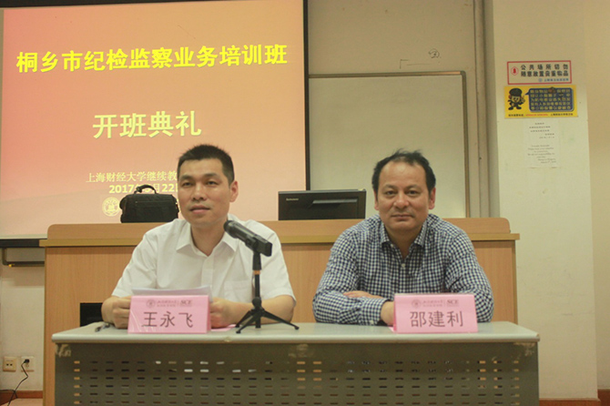 邵建利副院长首先代表上海财经大学继续教育学院对全体学员的到来表示热烈的欢迎,接着,他简要介绍了我校的发展历程以及继续教育学院在高层次非学历教育(培训)方面所取得的成绩。同时,感谢桐乡纪委对我院的信任,把重要的培训任务交由上海财经大学继续教育学院,并保证学院将会配备强大的教学管理团队,为大家提供最好的服务。最后,希望全体学员在上海财经大学继续教育学院学有所获、生活愉快。