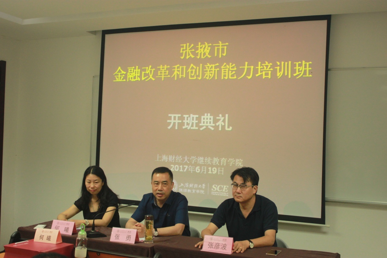 张掖市金融办何曦副主任讲述此次培训的目的是提升张掖市金融办、投融资平台、金融机构领导干部金融改革和创新能力素质,并要求学员做到正确对待、明确目的、严肃纪律对待此次培训,服从学院和跟班人员管理,保持课堂秩序,树立张掖市干部队伍的良好形象。