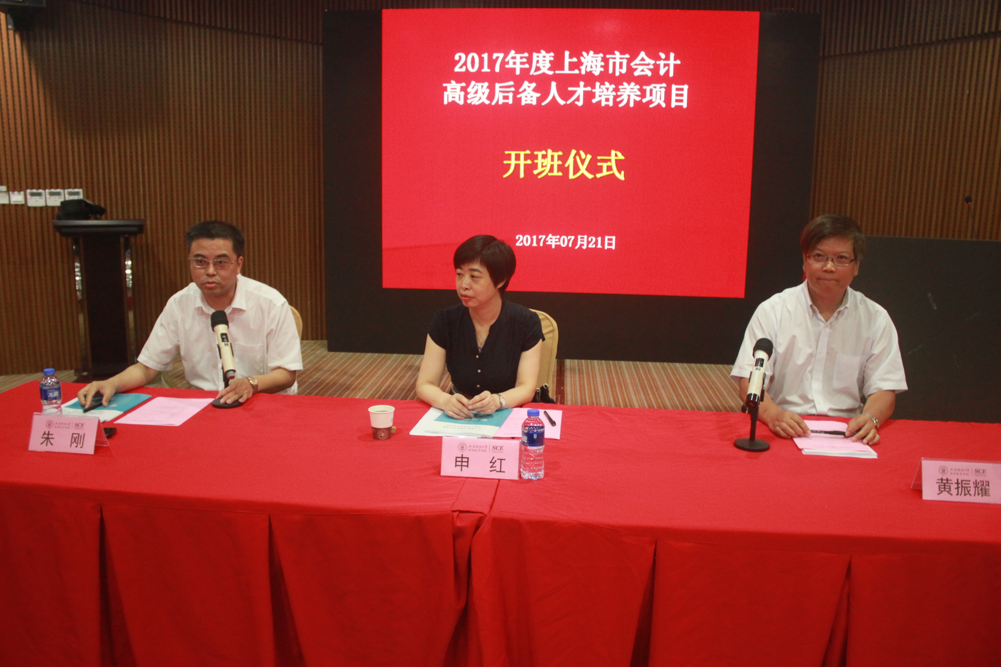 2017年7月21日,在我校中山北一路校区博思楼报告厅举行“2017年度上海市会计高级后备人才培养计划项目”的开班典礼,出席本次开班典礼的领导有上海市财政局会计处申红处长、上海市财政局会计处朱刚先生、上海财经大学继续教育学院培训部副主任黄振耀先生。