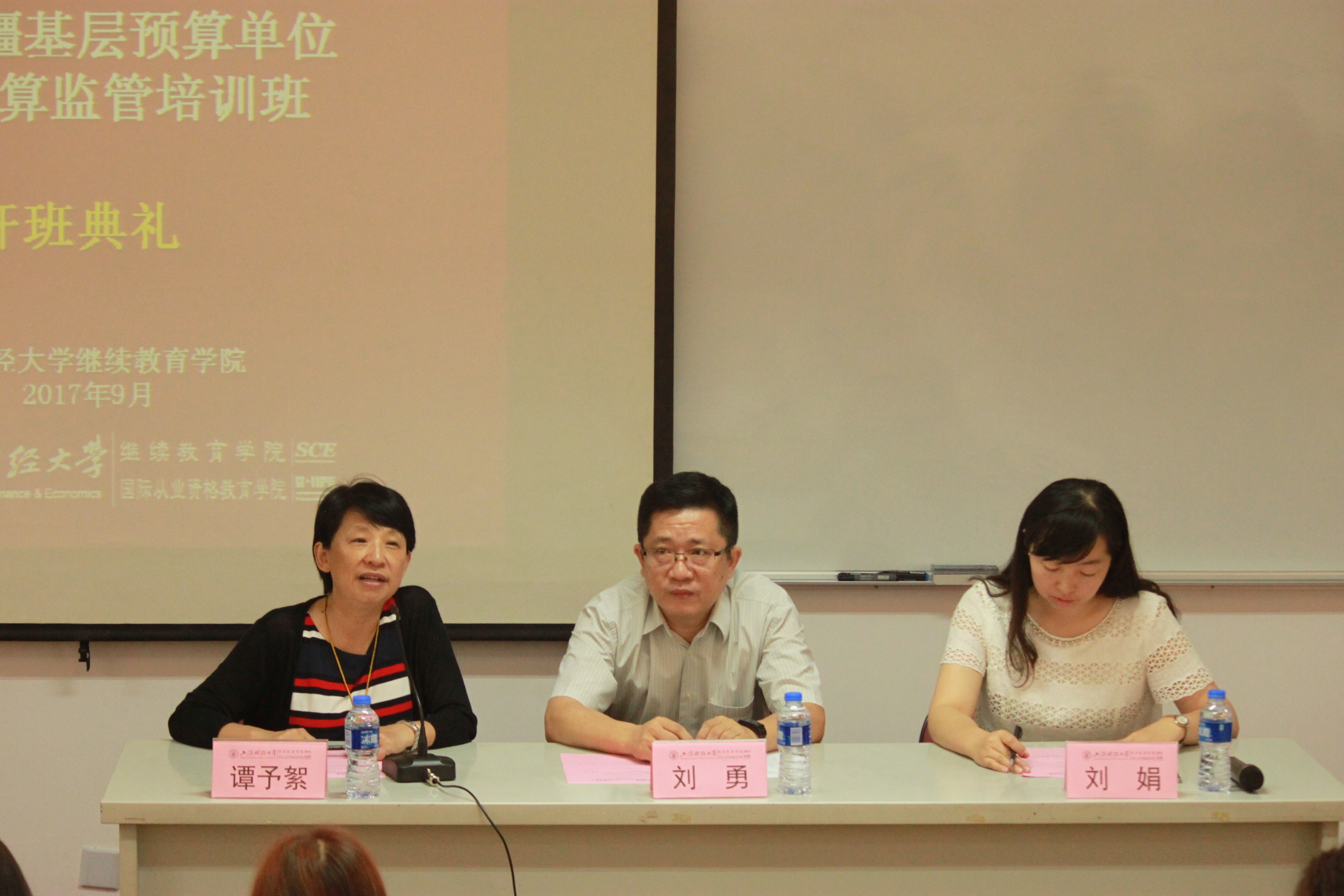 谭院长首先代表上海财经大学继续教育学院对全体学员的到来表示热烈的欢迎,接着,她简要介绍了我校的发展历程以及继续教育学院在高层次非学历教育(培训)方面所取得的成绩。同时,她感谢财政部新疆专员办对我院的信任,把重要的培训任务交由上海财经大学继续教育学院,并保证学院将会配备强大的教学管理团队,为大家提供最好的服务。最后,她希望全体学员在上海财经大学继续教育学院学有所获、生活愉快。