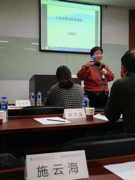 最后,张银杰教授阐述了股权设计的相关知识,股权结构反应了公司利益分配和风险承担机制,并且能够影响对管理层监控、投融资决策和成长机会选择等公司价值创造和分配行为。公司的股权结构多元化,相应的公司的董事会、监事会、经理层的结构也会随之发生较大变化,变为多元化。张教授用实际案例相结合教会同学们股权激励操作流程和股权激励设计方案,以上海家化、美的集团和华为作为经典案例。