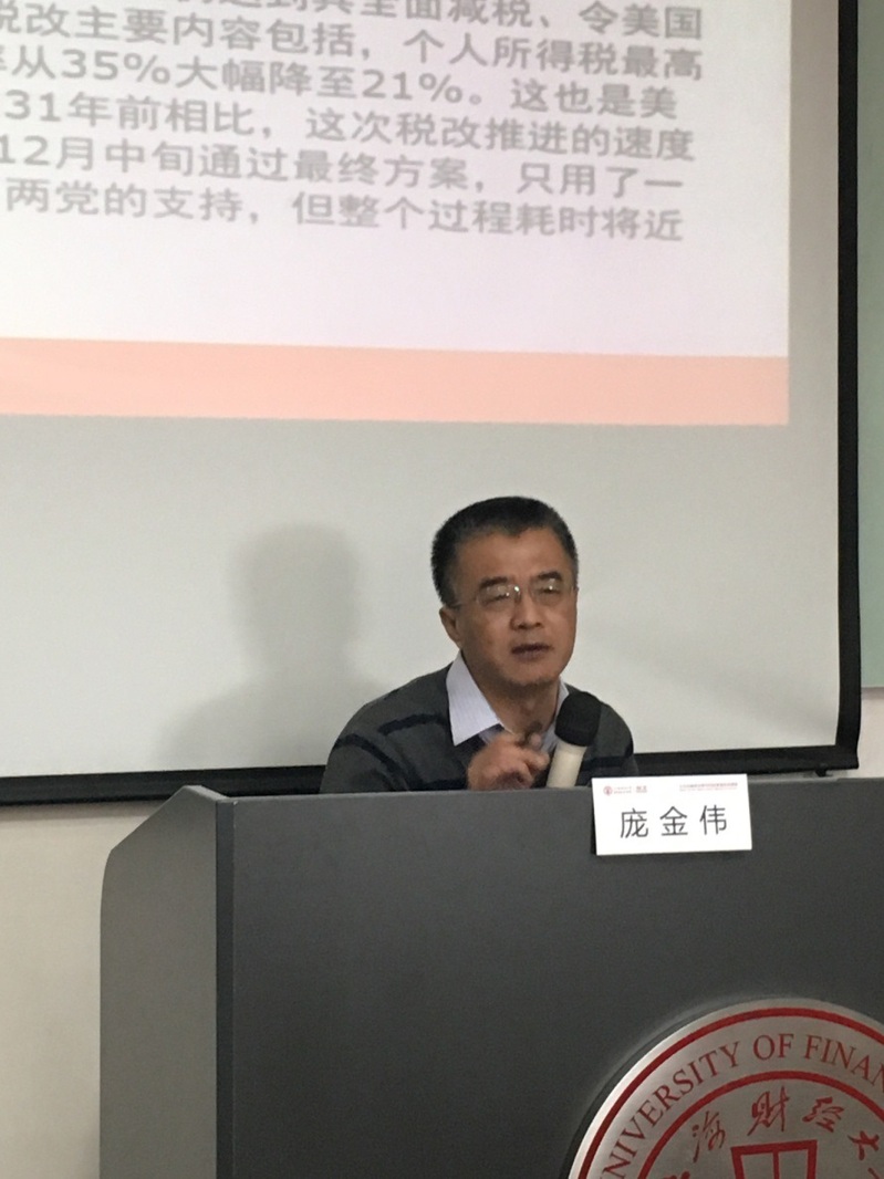 庞金伟教授首先点出税务工作开展的背景,从宏观、战略的角度看待税务管理问题,解释了国内外税制改革及趋势。庞老师指出我国的税收管理日益国际化,当前税收政策的核心即积极、稳健以及紧缩的财政政策和货币政策相结合。