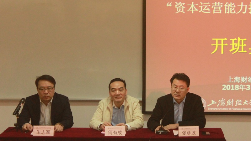 2018年3月26日,上海财经大学中山北一路校区第七教学楼举行广西宏桂资本运营集团有限公司“资本运营能力提升专题研修班”的开班典礼,出席本次开班典礼的领导有广西宏桂资本运营集团有限公司党委书记、董事长何有成先生,上海财经大学继续教育学院党总支书记张彦波先生,主持人是上海财经大学继续教育学院培训部主任朱志军先生。