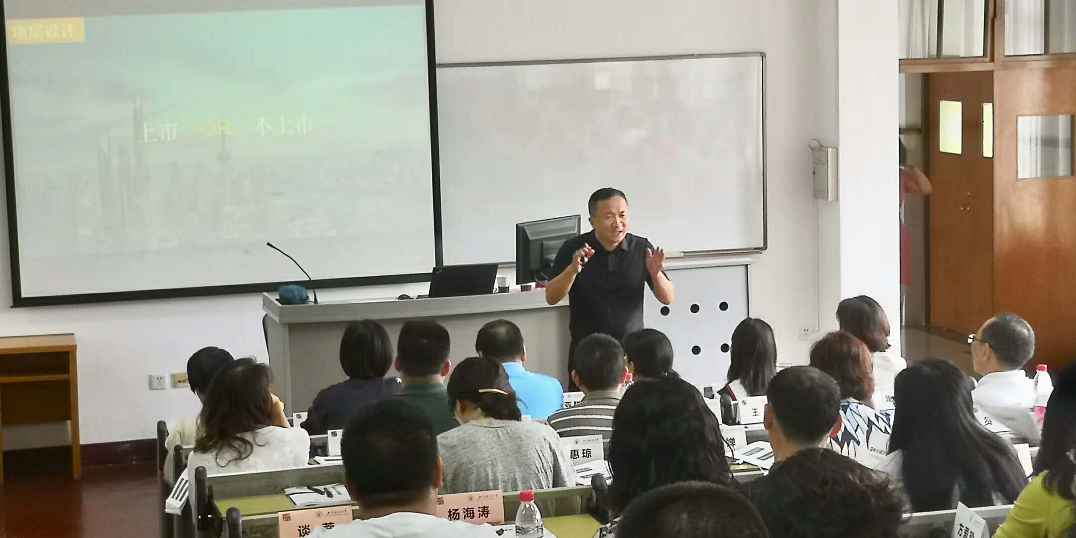 69日由北京山谷科技CEO、合伙股权设计专家耿小武老师授课,耿老师为大家讲解了企业合伙股权设计,耿老师幽默风趣的授课风格赢得了同学们的阵阵掌声。
