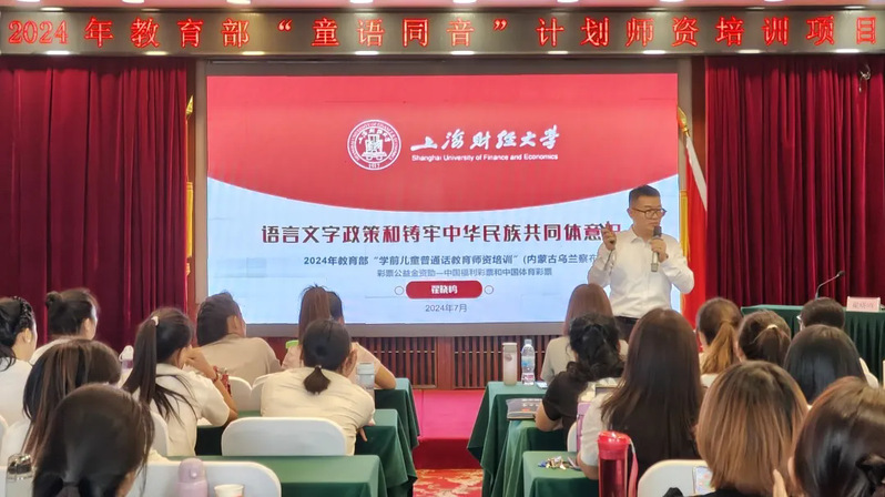在激昂的《爱我中华》合唱旋律中,2024教育部“童语同音”计划师资培训学员成果展示交流会在乌兰察布市圆满落幕。推广普及国家通用语言文字是构筑中华民族共有精神家园、铸牢中华民族共同体意识的重要前提。自2021年教育部启动“童语同音”计划以来,上海财经大学作为选派实施单位,项目团队先后历经新疆和田、云南红河、西藏日喀则、四川省凉山州,近期圆满完成2024年第一期内蒙乌兰察布市线下送教。