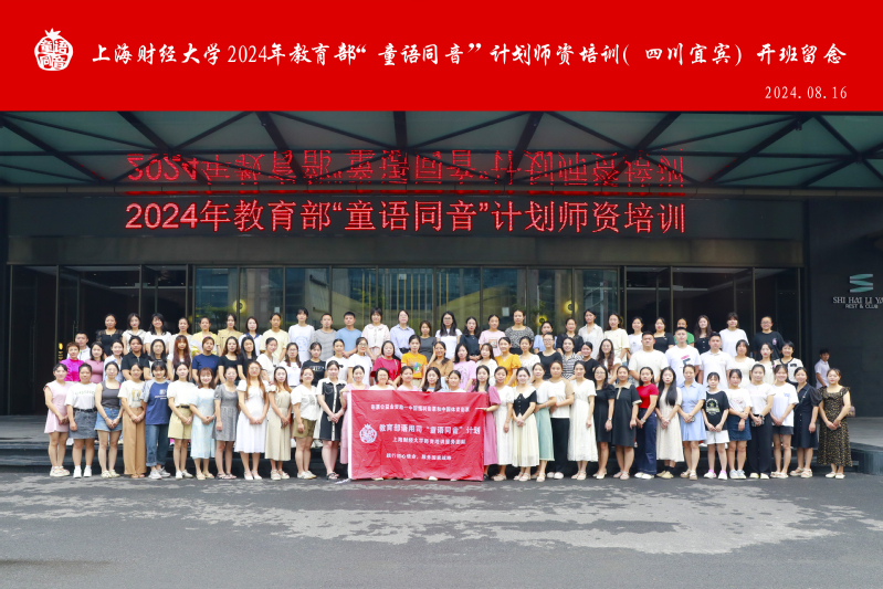 为深入贯彻落实习近平总书记关于学前儿童国家通用语言文字教育的重要指示精神,提升民族地区、农村地区幼儿教师国家通用语言文字的应用能力,按照教育部语用司工作部署,2024年8月16日,由上海财经大学承办、宜宾市教育局协办的教育部2024年“童语同音”计划师资培训项目在四川省宜宾市兴文县顺利开班。兴文县人民政府党组成员、副县长谢庆,兴文县教育体育局党组成员、机关党委书记胡梦,上海财经大学党委宣传部副部长刘金涛,上财终身教育学院党政培训三部主任杨剑锋,上海市教育督学、原上海市静安区语委办副主任庞燕,教育部大美育课题专家组组长李立志以及宜宾市兴文县100名幼儿教师参加了开班仪式。