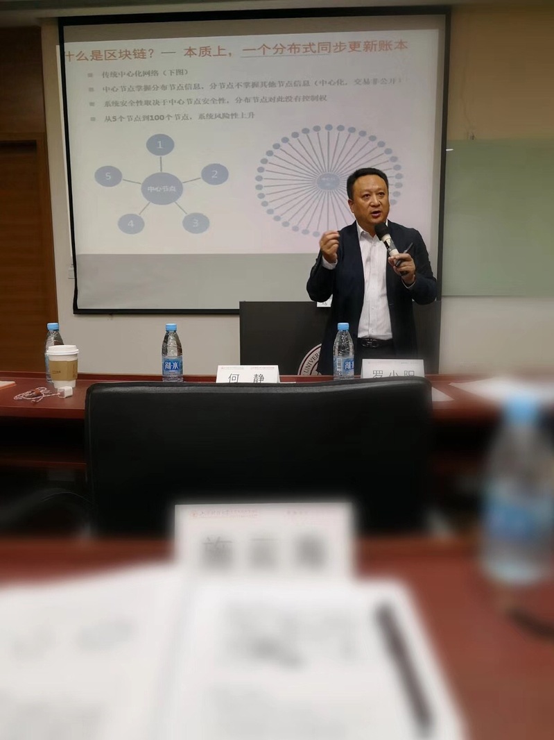 2018年6月23日,上海财经大学企业投融资与金融创新实战班如期开课,本次课程由移动互联网顶层赢利智慧研究院院长、中关村大数据产业研究会理事马兆林先生为同学们讲授《区块链+赋能数字经济》。马老师坦言,这是一个变化的年代,当很多人还没懂PC互联网的时候,移动互联网来了;当很多人还没懂移动互联网,大数据来了;而今天,很多人还没明白大数据,区块链又来了。