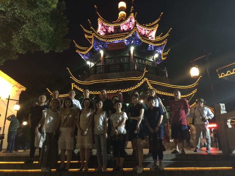 当天晚上,财总班四期班委组织了夜游苏州古运河的活动,有20余名同学及家属参加。夜幕下的苏州古运河,在灯笼的照耀下显得五彩斑斓,大家也沉醉在苏州旖旎的风光中……