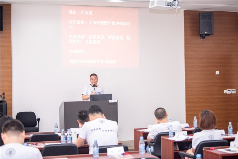 来自上海亦晋资产管理有限公司的刘海波也是百忙之中抽空参加新班开学典礼,刘董表示在当今的时代背景下,与时俱进是每个企业家必须要做的,上海财大正好提供了这样一个持续深入、理性研判、合理合法的沟通平台,同学们在这个平台上能够心无旁骛、友善真诚地沟通,希望与同学们携手一起成长,成为事业上的好伙伴、生活上的好朋友。