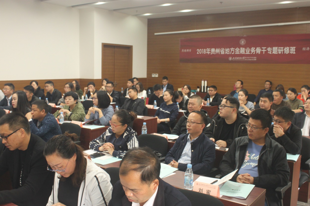 2018 年 11月5日,2018年贵州省地方金融业务骨干专题研修班在我校继续教育学院顺利开班。出席本次开班典礼的领导有贵州省人民政府金融工作办公室党组成员、副主任马林波先生,贵州省人民政府金融工作办公室综合处副处长朱迪先生、上海财经大学继续教育学院院长谭予絮女士。