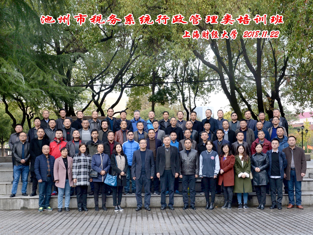 2018年11月22日至26日,安徽省池州市税务系统行政管理类培训班在上海财经大学中山北一路校区继续教育学院成功举行,60位来自池州市税务系统的优秀行政管理干部参加了学习。