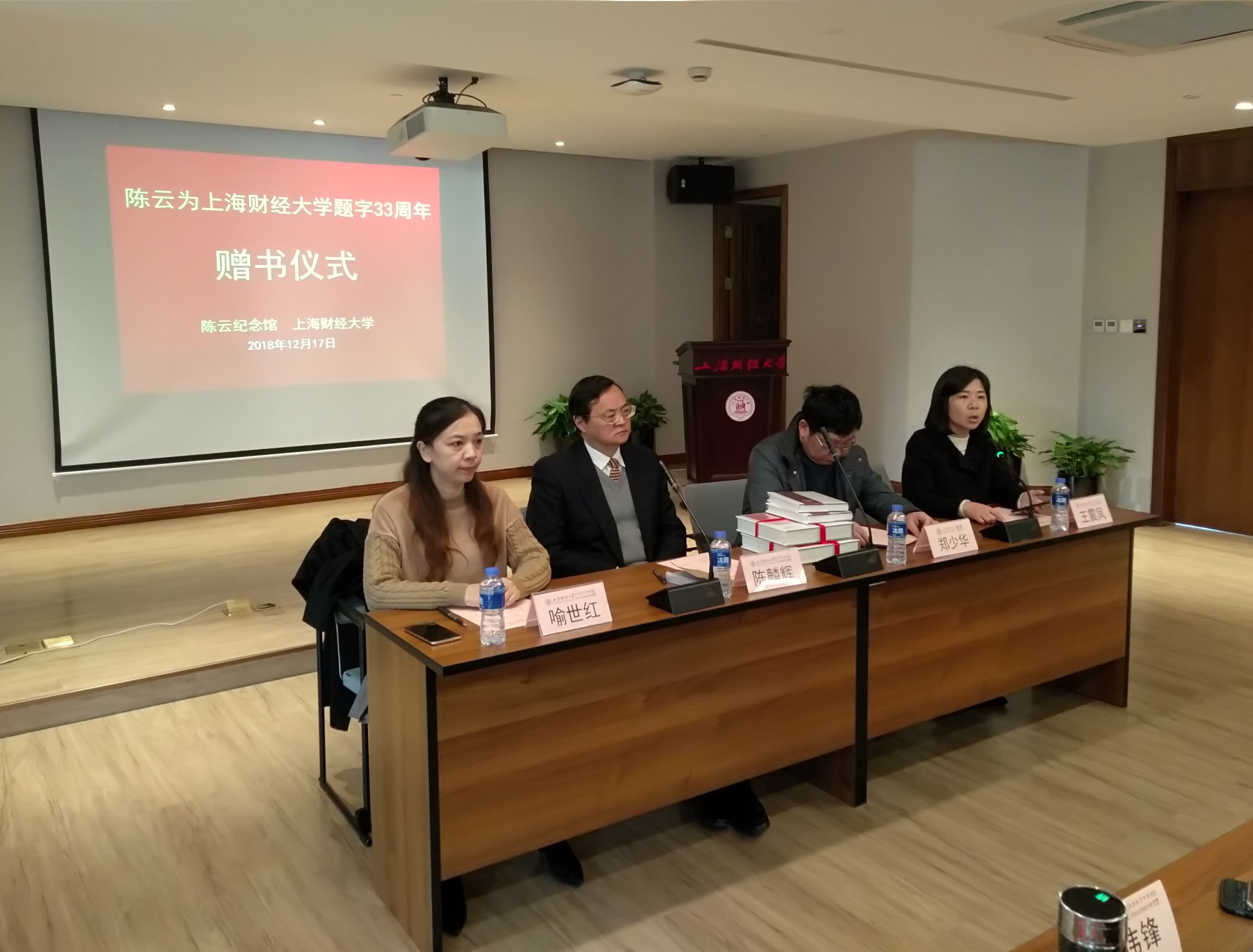 12月17日,研究陈云同志有关书籍捐赠仪式及陈云纪念馆党员干部党性教育和财经纪律培训班开班典礼在我校育衡楼举行。陈云纪念馆党委书记、馆长陈麟辉,上海财经大学校长助理郑少华,档案馆馆长喻世红出席活动。仪式由陈云纪念馆党委副书记、纪委书记、副馆长王震凤主持,典礼由上海财经大学继续教育学院院长谭予絮主持。