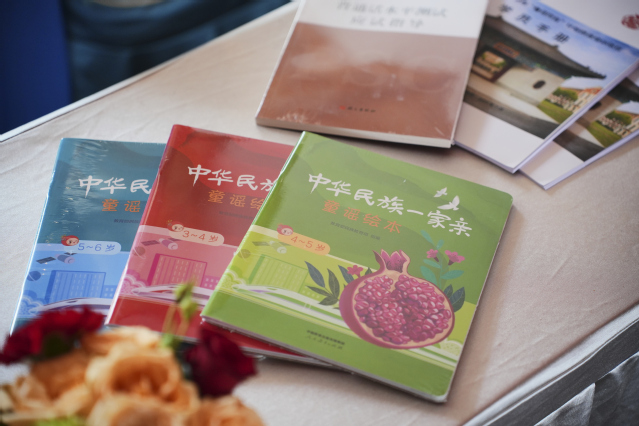 开班式现场,上海财经大学向全体参训教师赠送了由教育部特别协调人民教育出版社支持提供的2024年“中国好书”《中华民族一家亲 童谣绘本》这一辅助教材,助力教师在教学实践中更好地将语言教学与民族团结教育相融合。