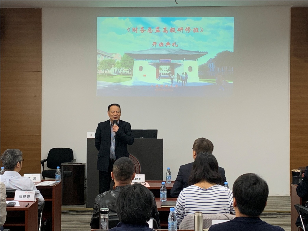 4月20日上午,上海财经大学《财务总监高级研修班》2019年春季班开学典礼在我校中山北一路校区举行。上海财经大学继续教育学院副院长邵建利教授、培训部主任黄振耀教授,以及来自全国各地的企业负责人、财务总监等全体学员参加了开学典礼。