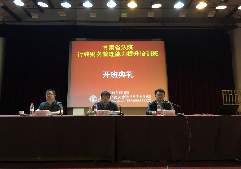 2019年4月16日, 2019年甘肃省法院“弘扬爱国奋斗精神,建功立业新时代”专题研修班开班典礼在我校中山北一路校区举行。由省法院副巡视员、行装处处长张平平主持开班仪式,出席本次开班典礼的领导有:甘肃省法院党组成员、副院长陈天雄,上海财经大学继续教育学院党总支书记张彦波致辞。