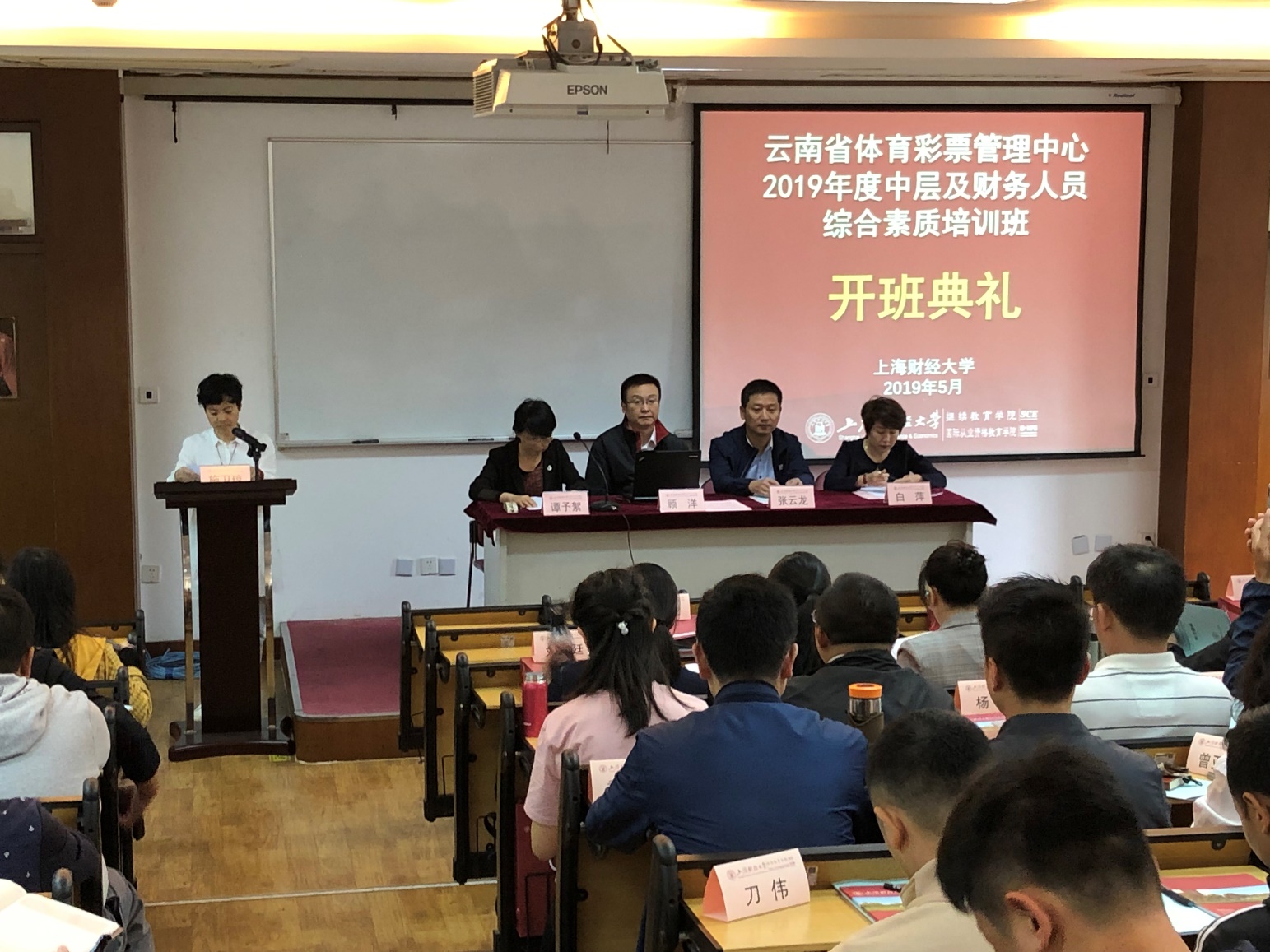 2019年4月15日,由云南省体育彩票管理中心和上海财经大学继续教育学院合作举办的“云南省体育彩票管理中心2019年度中层及财务人员综合素质培训班”开班典礼在我校中山北一路校区举行。出席本次开班典礼的领导有国家体育总局体育彩票管理中心财务处处长顾洋先生,云南省体育彩票管理中心主任张云龙先生,上海财经大学继续教育学院院长谭予絮女士,云南省体育彩票管理中心主任助理白萍女士。