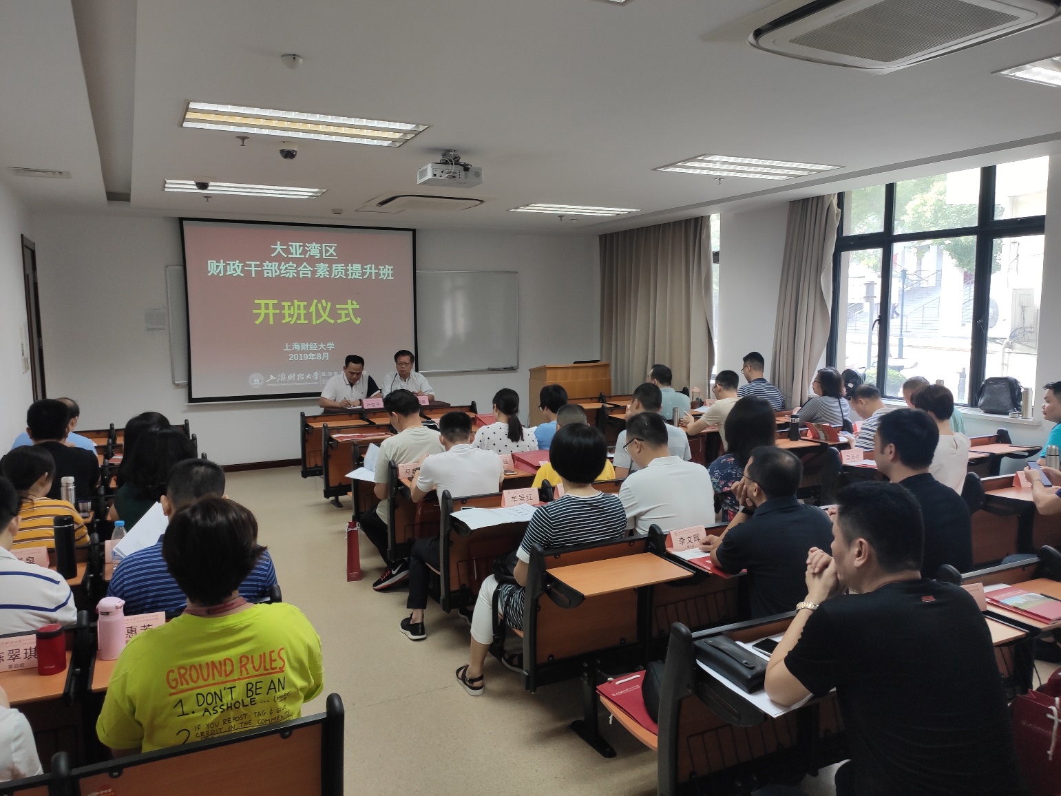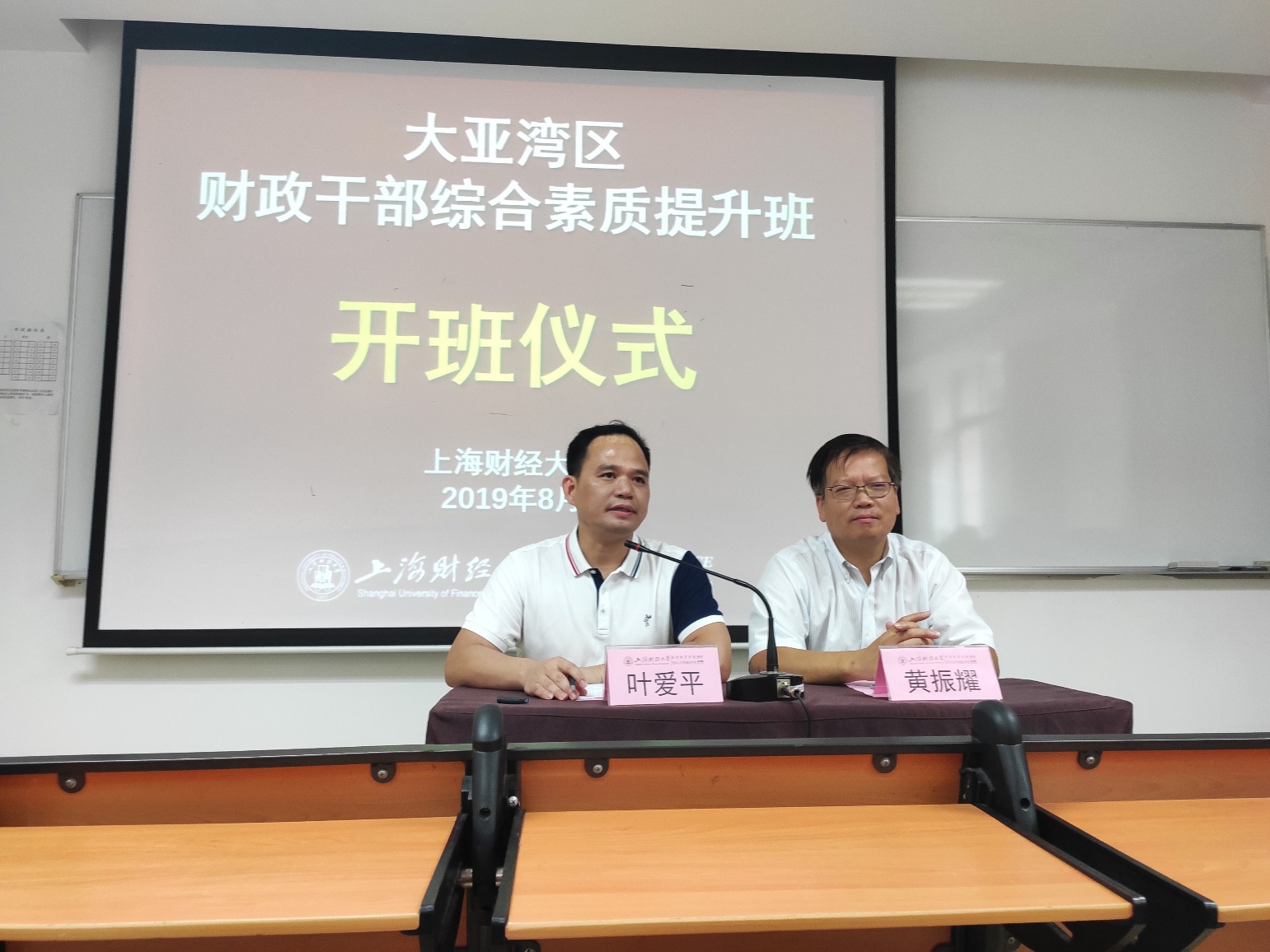 2019年8月27日,由大亚湾经济技术开发区财政局、上海财经大学继续教育学院合作举办的“大亚湾区财政干部综合素质提升班”开班仪式在我校中山北一路校区举行。出席本次开班典礼的领导有:惠州大亚湾经济技术开发区财政局党组成员,纪检组长叶爱平、上海财经大学继续教育学院培训部主任黄振耀教授。